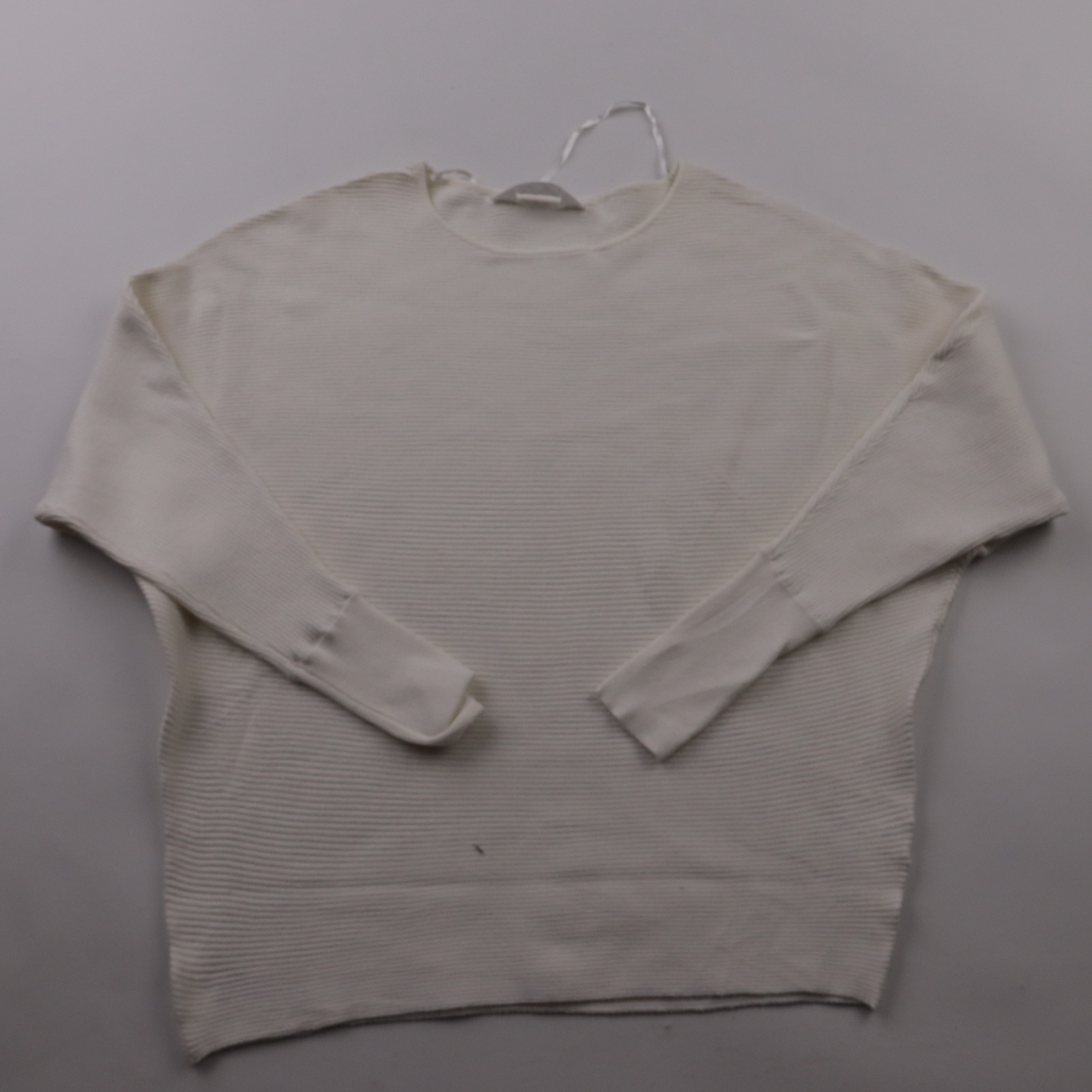 Женский джемпер Primark молочного цвета в мелкий рубчик с круглым вырезом. Подойдёт для повседневных образов и офиса, хорошо сочетается с джинсами и юбками. Трикотаж с вискозой мягкий и комфортный, а добавление полиэстера и нейлона помогает держать форму.