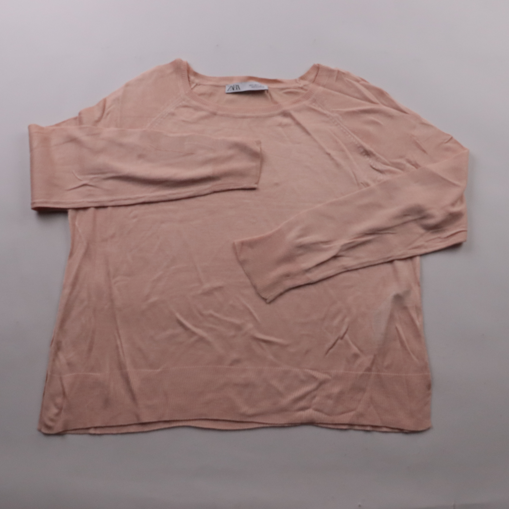 Тонкий джемпер Zara нежного розового цвета с круглым вырезом и длинным рукавом. Подойдёт для офиса и повседневных образов, удобно носить как самостоятельный слой или под жакет. Лёгкий трикотаж из вискозы с акрилом мягкий и практичный в уходе.