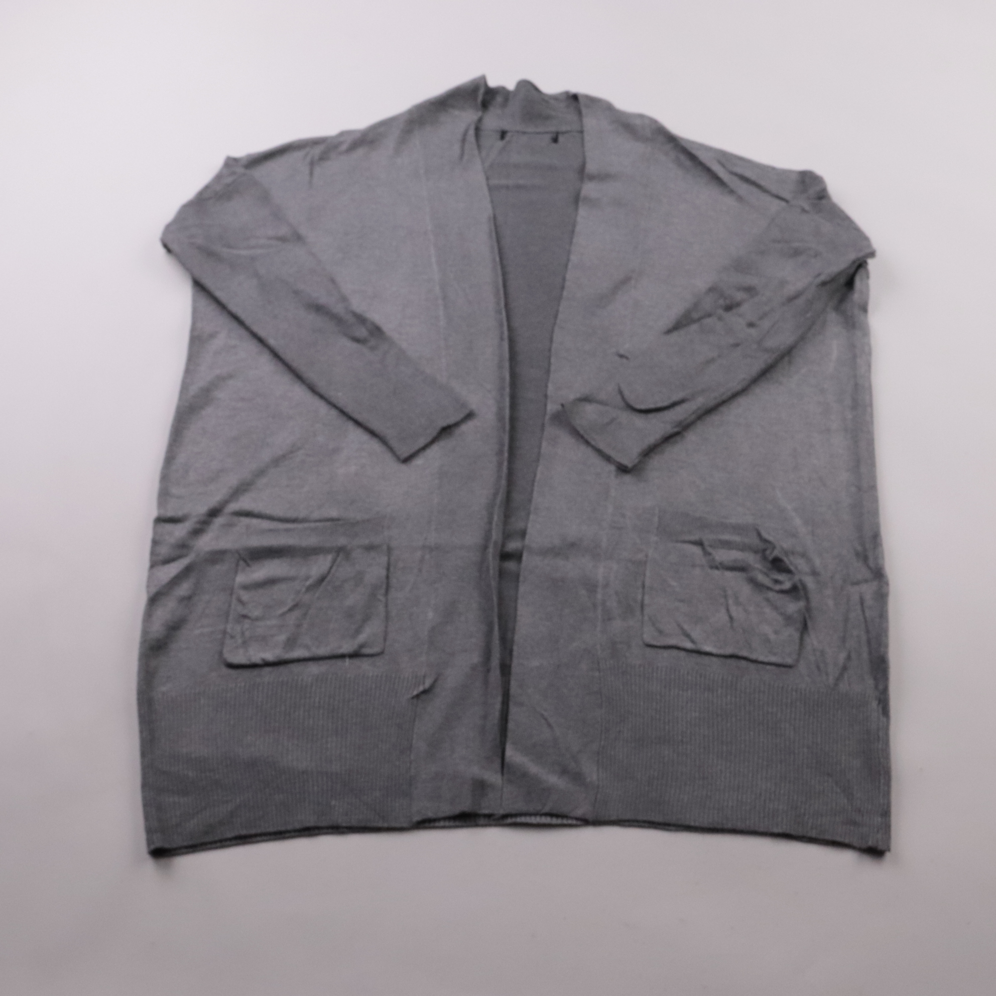 Серый удлинённый кардиган свободного кроя с накладными карманами и открытым передом. Подойдёт для прогулок и офиса в прохладную погоду, легко сочетается с джинсами и платьями. Практичен тем, что можно носить слоями и быстро накинуть поверх базовой одежды.