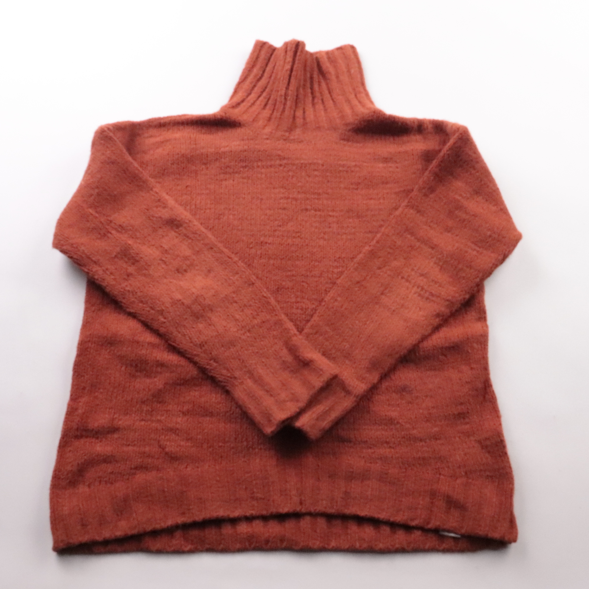 Вязаная водолазка Primark терракотового цвета с высоким воротником и мягкой фактурой. Подойдёт для прохладной погоды и удобно сочетается с джинсами или юбкой в повседневных образах. Материал не мнётся и прост в уходе.