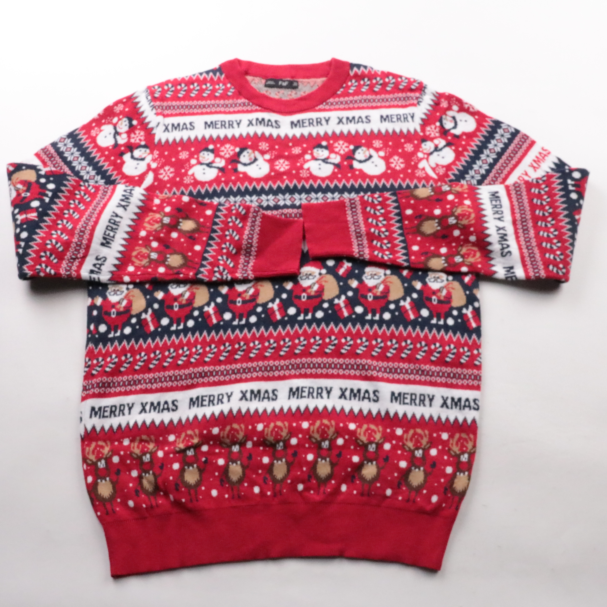 Вязаный свитер F&F с ярким новогодним жаккардовым рисунком (снеговики, Санта, олени) и надписью Merry Xmas. Подойдёт для зимних прогулок, уютных домашних вечеров и тематических вечеринок. Плотная вязка хорошо удерживает тепло и комфортно носится под ку...