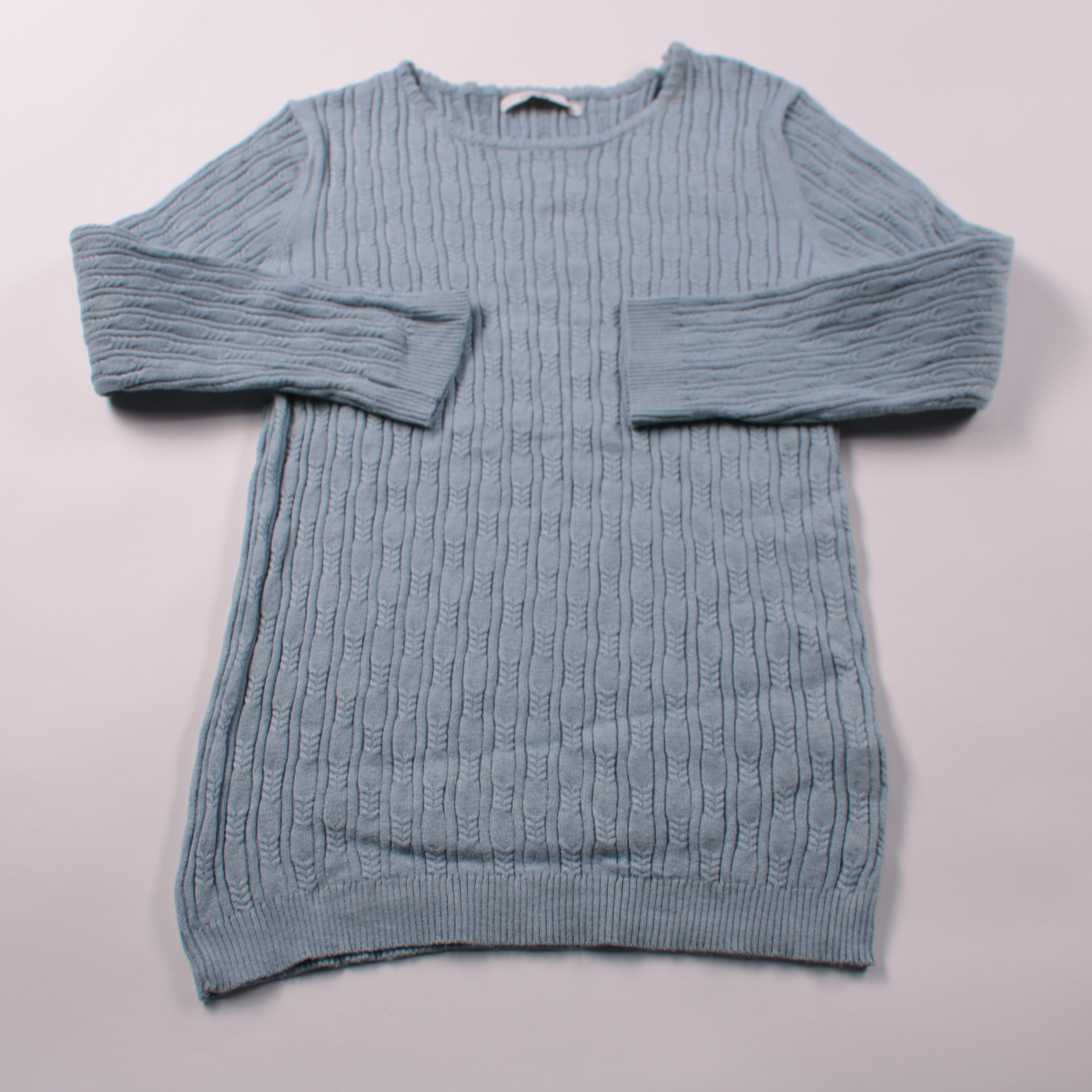 Вязаный свитер Hailys голубого цвета с фактурным узором «косы» и круглым вырезом. Подойдёт для повседневных образов в прохладную погоду, хорошо сочетается с джинсами и юбками. Мягкая вязка комфортна в носке и не стесняет движений.