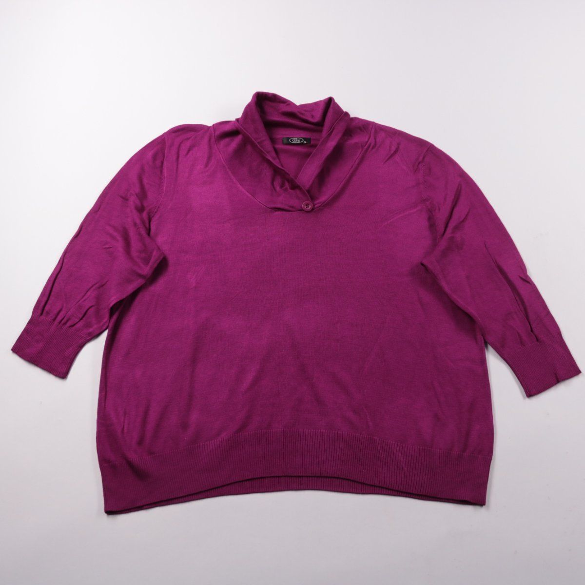 Женский джемпер Bm фиолетового цвета с мягким воротником и рукавом 3/4. Подойдёт для офиса и повседневных образов в прохладную погоду, хорошо сочетается с джинсами и юбками. Практичный плюс — тонкий трикотаж из вискозы приятен к телу и легко стирается.