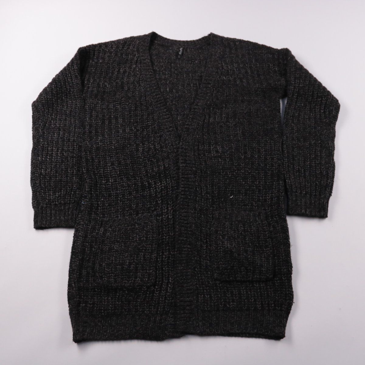 Вязаный кардиган без застёжки, мягкой фактурной вязки. Подойдёт для повседневных образов и офиса в прохладную погоду, удобно носить как верхний слой поверх топа или водолазки. Тёмный цвет практичен и легко сочетается с базовым гардеробом.