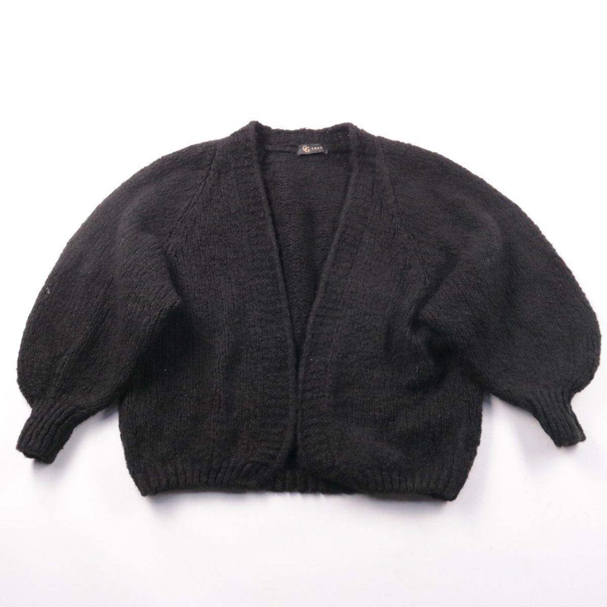 Женский вязаный кардиган GG Luxe чёрного цвета с открытым передом и объёмными рукавами. Подойдёт для повседневных образов и многослойных комплектов в прохладную погоду. Мягкая пряжа с добавлением мохера хорошо удерживает тепло.