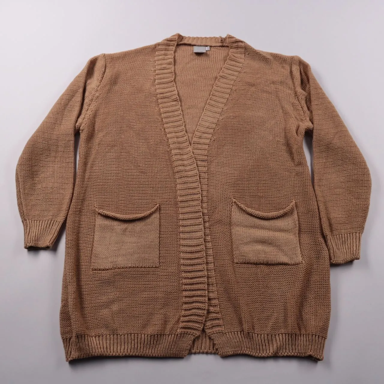 Трикотажный кардиган FOS Amsterdam в бежево-карамельном оттенке, без застёжки, с V-вырезом и накладными карманами. Подойдёт для повседневных образов и многослойности в прохладную погоду. Практичное преимущество — 100% акрил, легко стирается и быстро со...