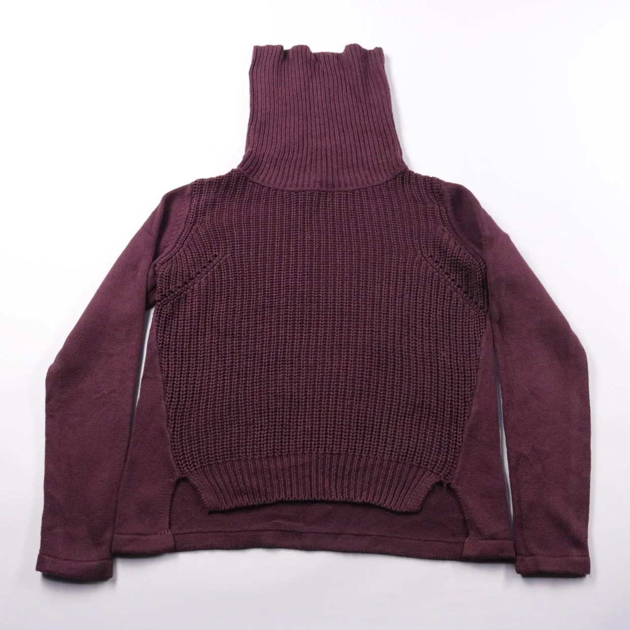 Водолазка s.Oliver бордового цвета с высоким воротником и комбинированной фактурной вязкой спереди. Подойдёт для прохладной погоды и многослойных образов с джинсами или юбкой. Плотный воротник хорошо защищает шею от ветра.