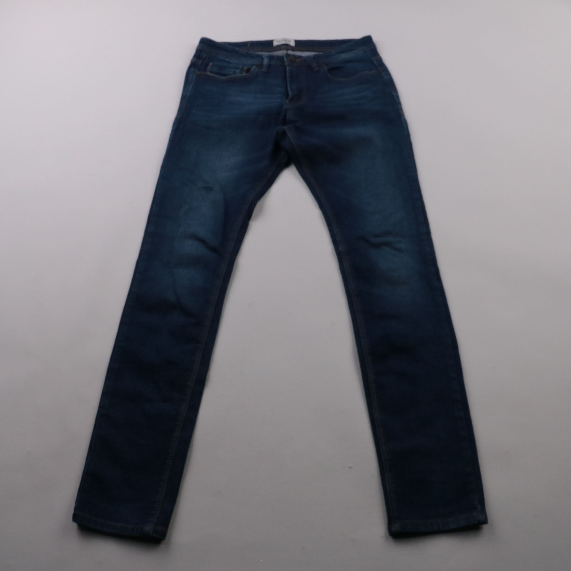 Джинсы Pull&Bear из тёмно-синего денима с лёгкими высветлениями. Подойдут на каждый день и легко сочетаются с кедами, ботинками и базовыми топами. Практичный плотный материал хорошо держит форму.