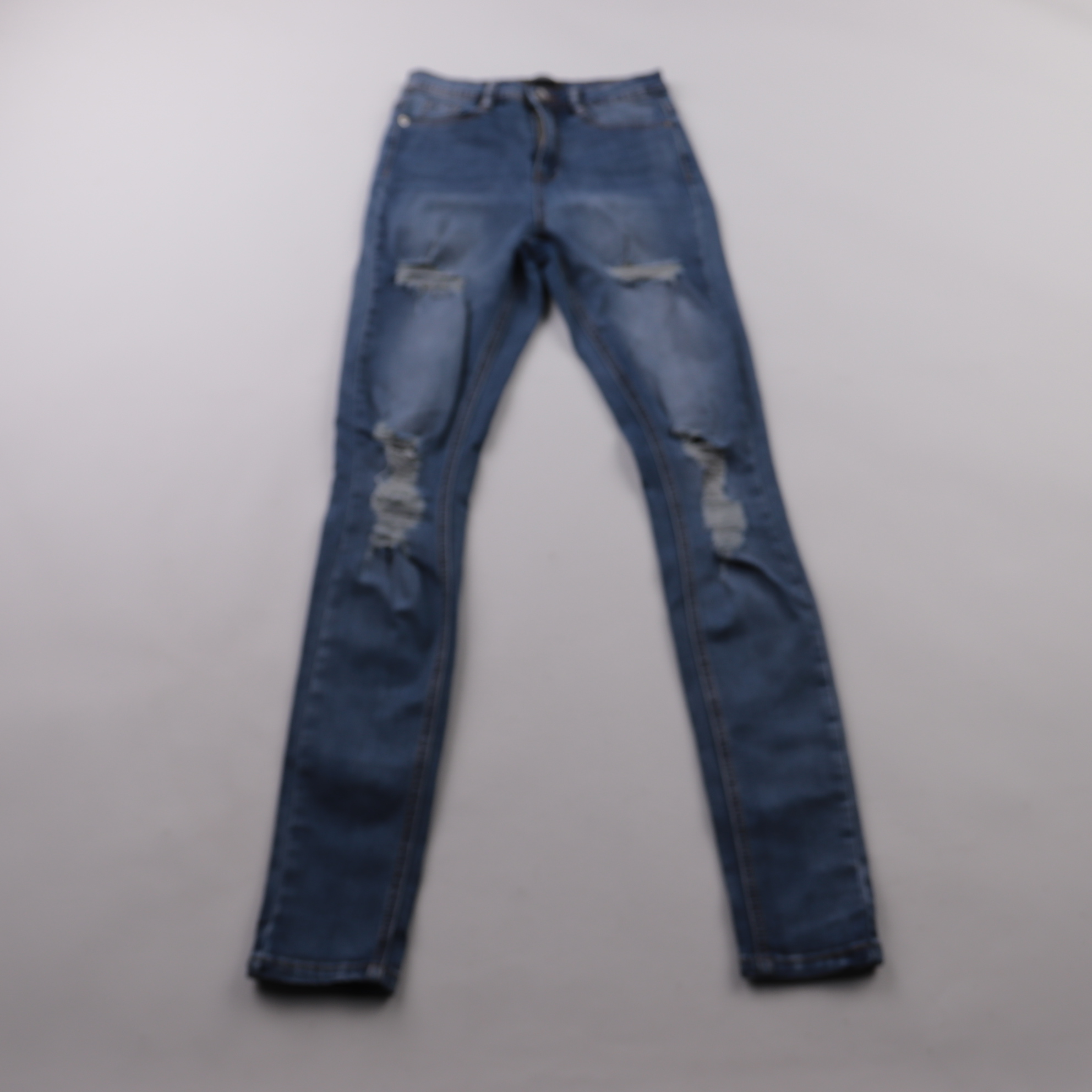 Женские джинсы Missguided из синего денима с потертостями и декоративными разрывами. Подойдут для повседневных образов с футболками, худи и кедами. За счёт добавления эластана ткань чуть тянется и комфортнее садится по фигуре.