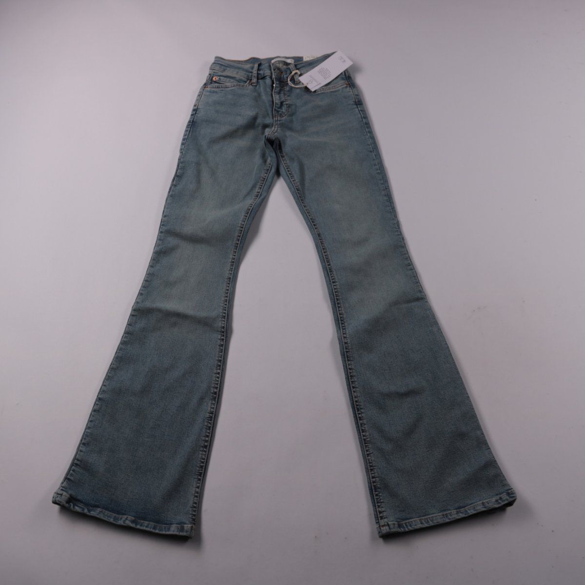 Женские джинсы Gina Tricot модели low waist bootcut в голубом дениме. Подойдут для повседневных образов и обуви на каблуке или платформе. За счёт добавления эластана ткань чуть тянется и комфортнее садится по фигуре.