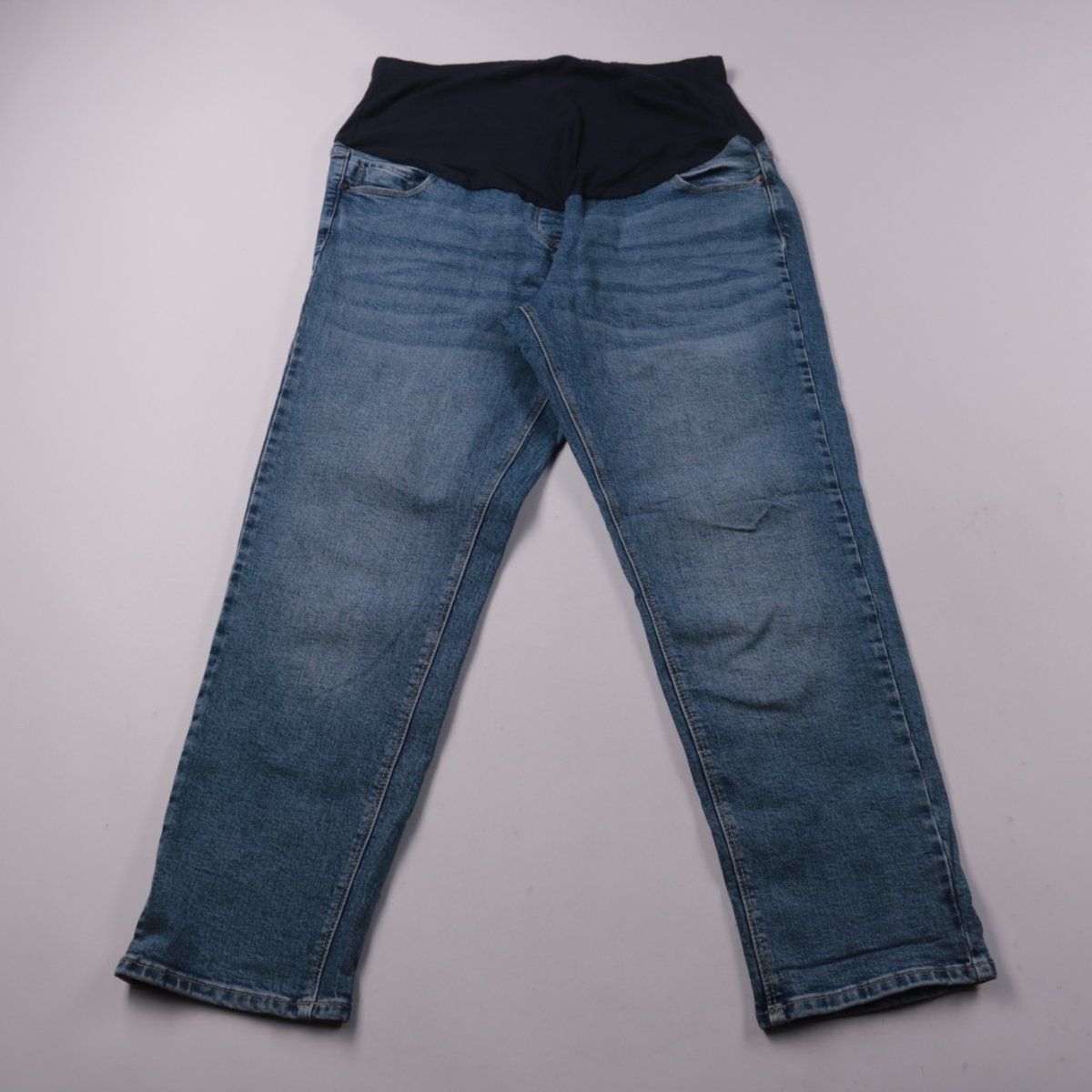 Джинсы George Maternity из синего денима с эластичной вставкой на животе. Подойдут для повседневной носки во время беременности и для прогулок. Плотная ткань держит форму и не требует сложного ухода.