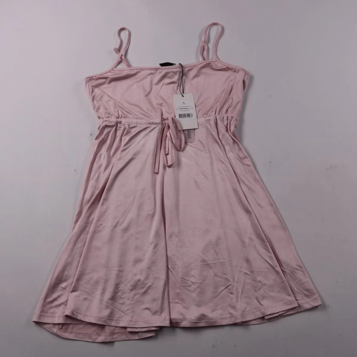 Женская сорочка NA-KD нежно-розового цвета на тонких бретелях, с мягкой сборкой и регулируемой кулиской на талии. Подойдёт для сна и домашнего отдыха благодаря лёгкому гладкому материалу. Бирки сохранены, удобно подгоняется по фигуре за счёт завязок.