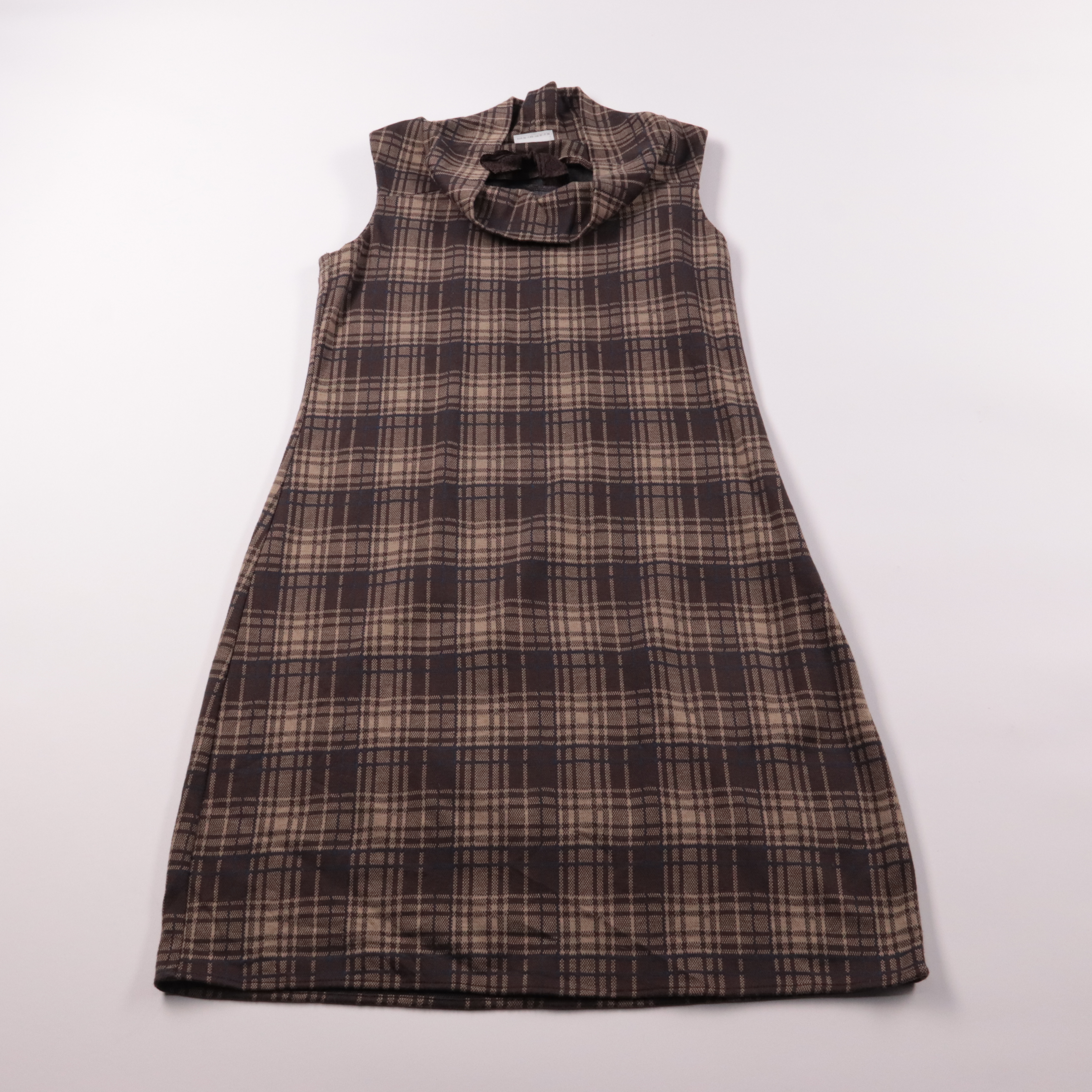 Платье Street One без рукавов в коричневую клетку с воротником-стойкой и декоративным бантом. Подойдёт для офиса и повседневных образов в прохладную погоду, хорошо смотрится с водолазкой или жакетом. Практичный плюс — плотная ткань держит форму и почти...