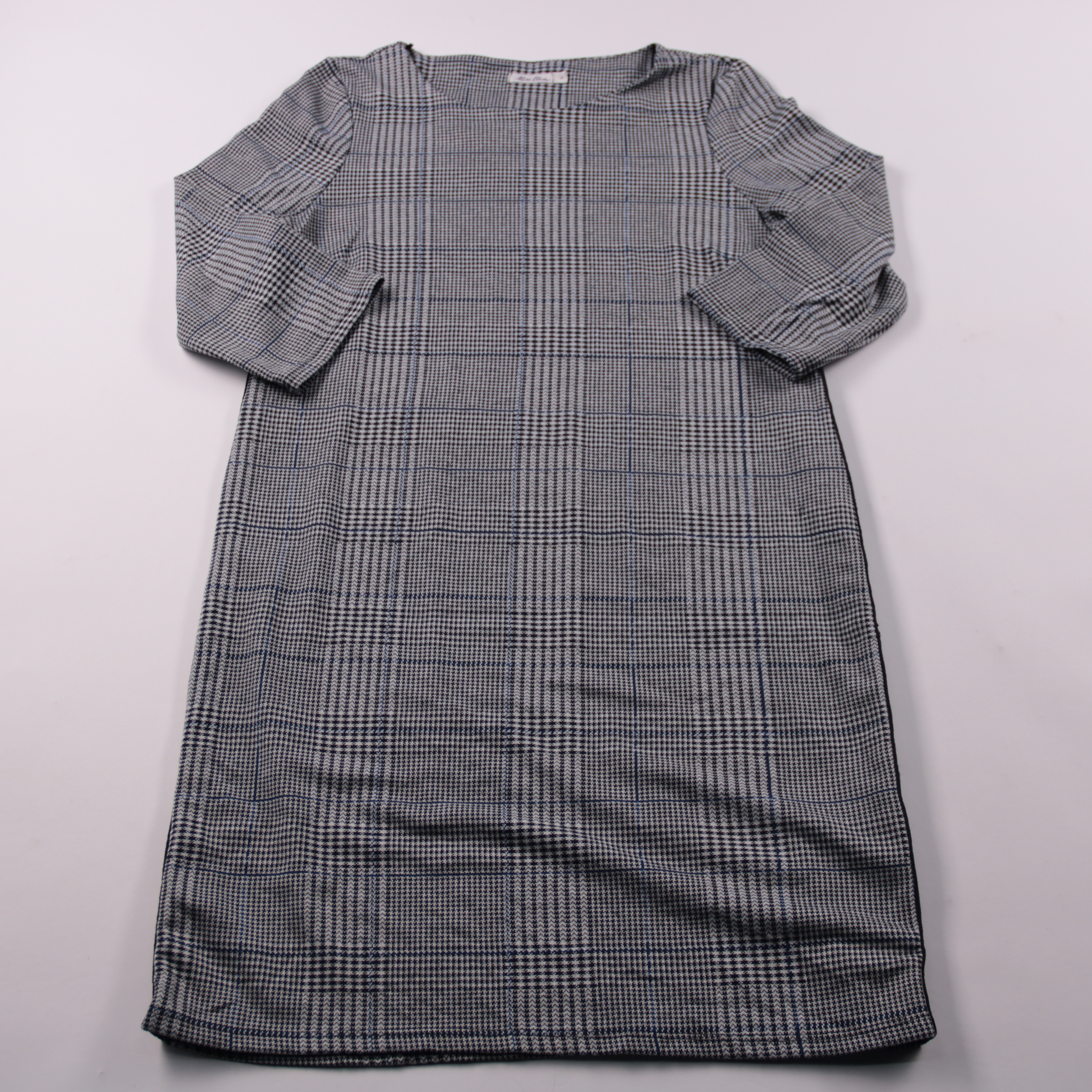 Повседневное платье Miss Etam прямого кроя в серо-синюю клетку, с рукавом 3/4 и округлым вырезом. Подойдёт для офиса и на каждый день, легко сочетается с жакетом и обувью на низком ходу. Практичный материал с эластаном меньше мнётся и чуть тянется, поэ...