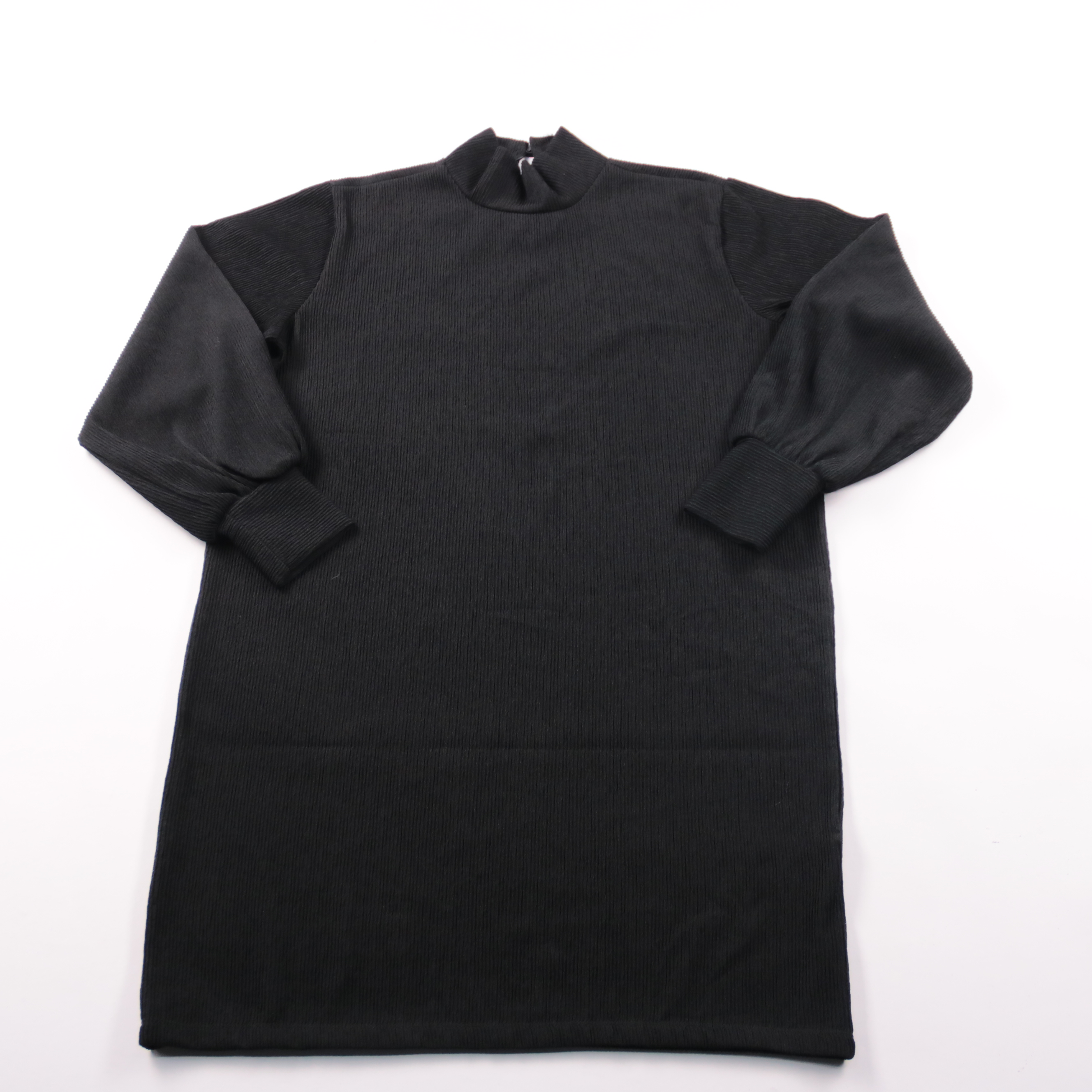 Повседневное платье Bien Bleu из ребристого трикотажа с объемными рукавами-«баллонами» и высоким воротником. Подойдет для офиса и прогулок в прохладную погоду, легко сочетается с ботильонами или кедами. Плотная ткань хорошо держит форму и практически н...