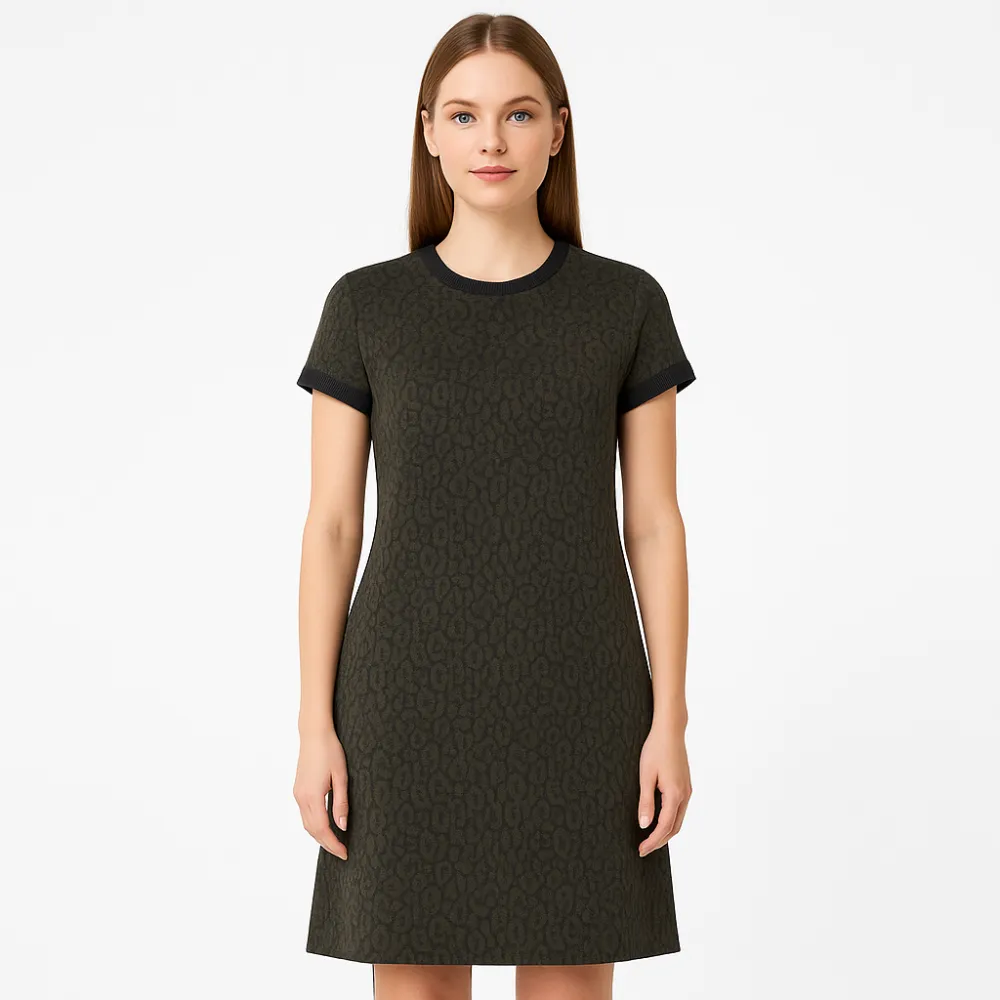 Повседневное платье Costes Basic из жаккардовой ткани с коротким рукавом и круглым вырезом. Подойдёт для офиса и на каждый день благодаря лаконичному силуэту и спокойному рисунку. Практичный материал с эластаном хорошо тянется и комфортно садится по фи...
