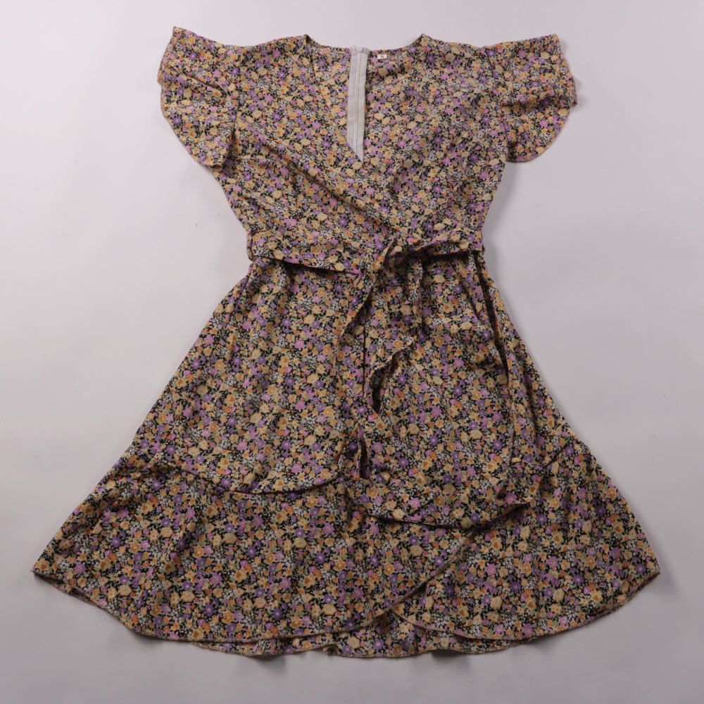 Повседневное платье Shein с цветочным принтом, короткими рукавами и поясом на талии. Подойдёт для прогулок и летних встреч, лёгкая ткань комфортно носится в тёплую погоду. Практично тем, что не мнётся сильно и быстро сохнет.