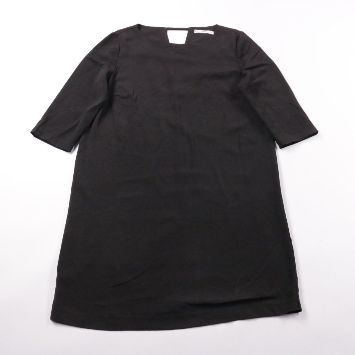 Повседневное платье Mango прямого кроя в чёрном цвете с рукавом 3/4 и лаконичным вырезом. Подойдёт для офиса, деловых встреч и повседневных образов, легко сочетается с жакетом и обувью на каблуке или лоферами. Практичный плюс — немнущаяся ткань с добавлением эластана комфортно садится по фигуре.