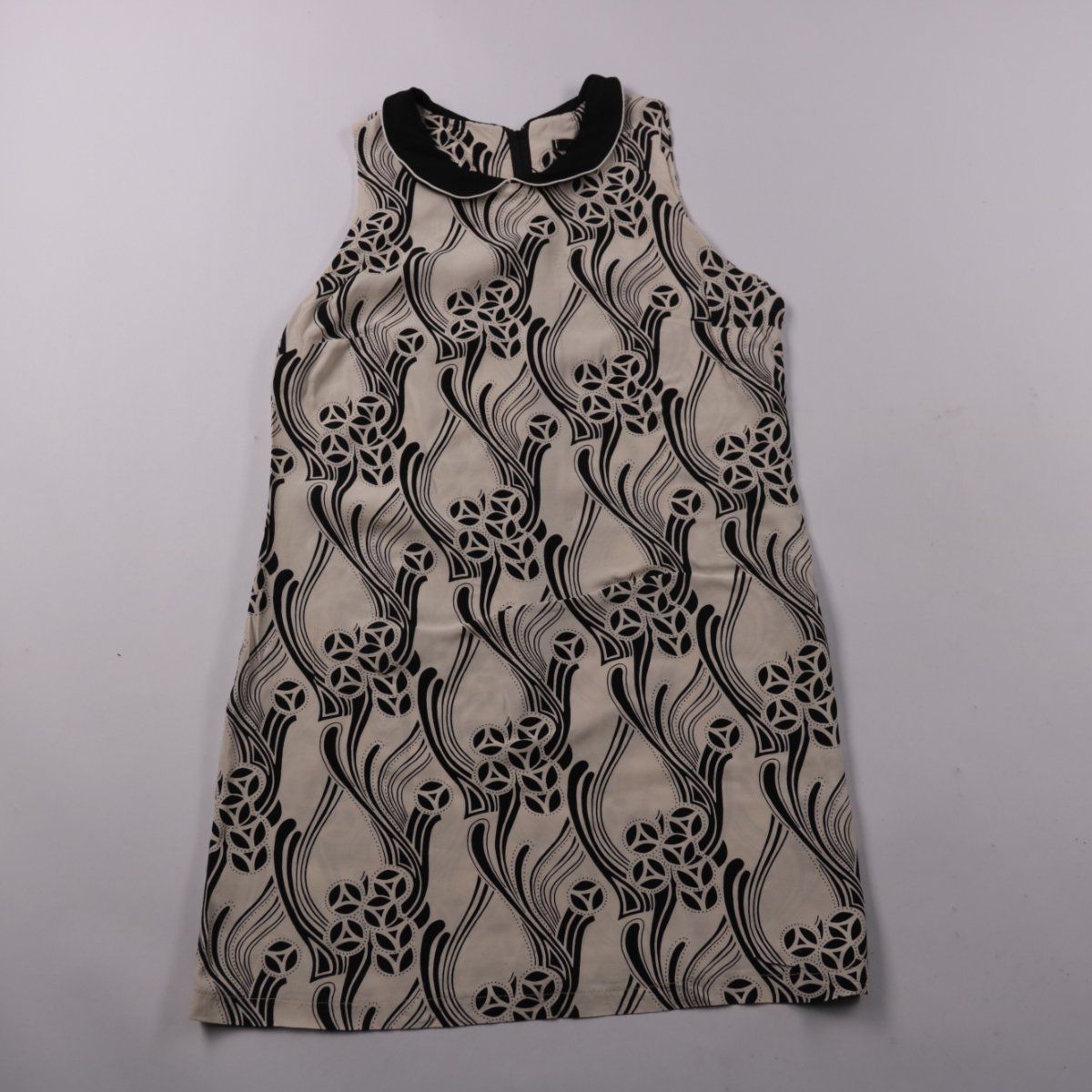 Повседневное платье Dunnes прямого кроя без рукавов с контрастным чёрным воротником и графичным принтом. Подойдёт для лета и тёплых дней в городе, можно носить с балетками или кедами. Лёгкая вискоза приятно ощущается на коже и хорошо дышит.