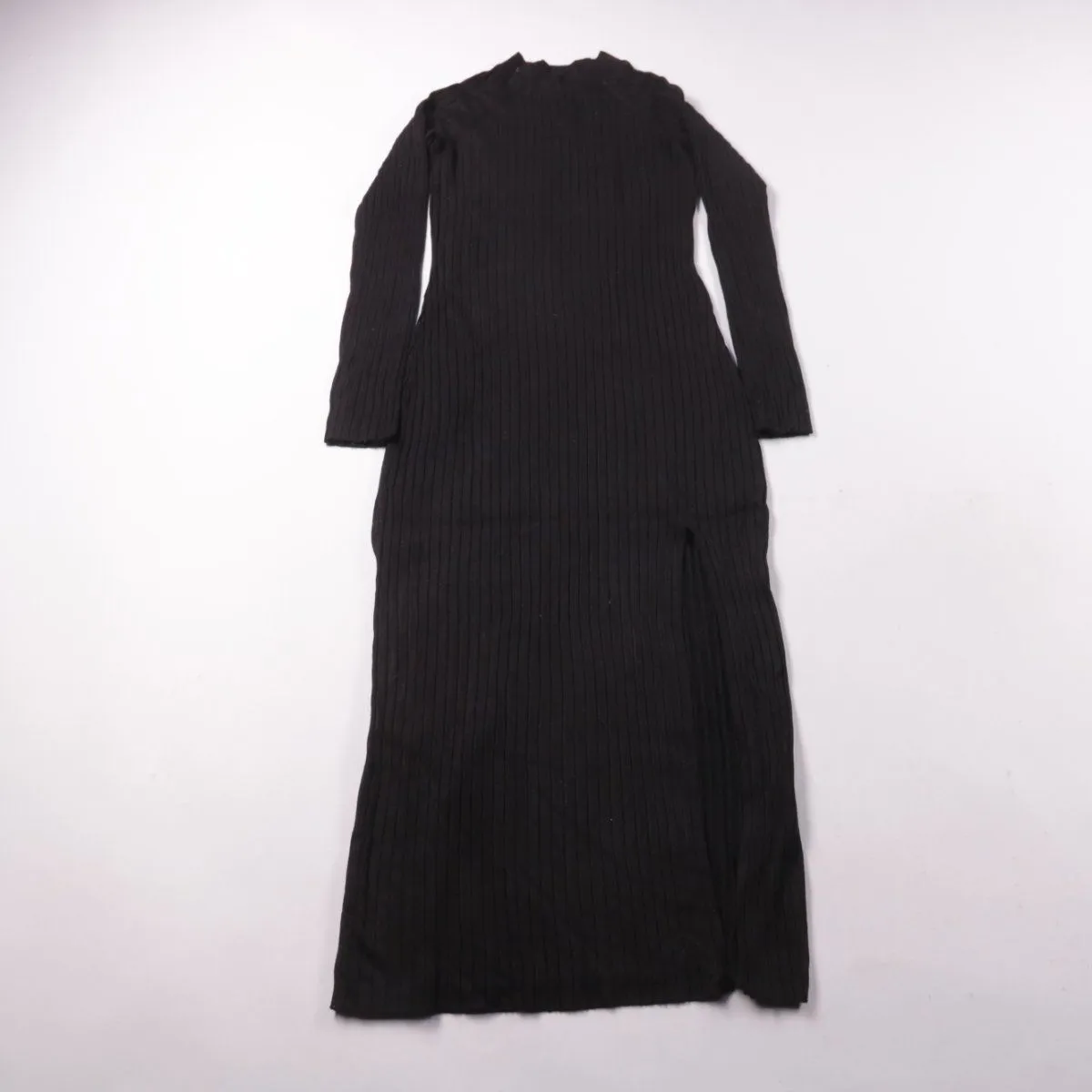 Повседневное платье Bershka чёрного цвета в рубчик, с длинным рукавом и длиной миди/макси. Подойдёт для повседневной носки в прохладную погоду, хорошо сочетается с ботинками и кроссовками. Рельефная трикотажная фактура тянется и комфортно садится по фигуре.