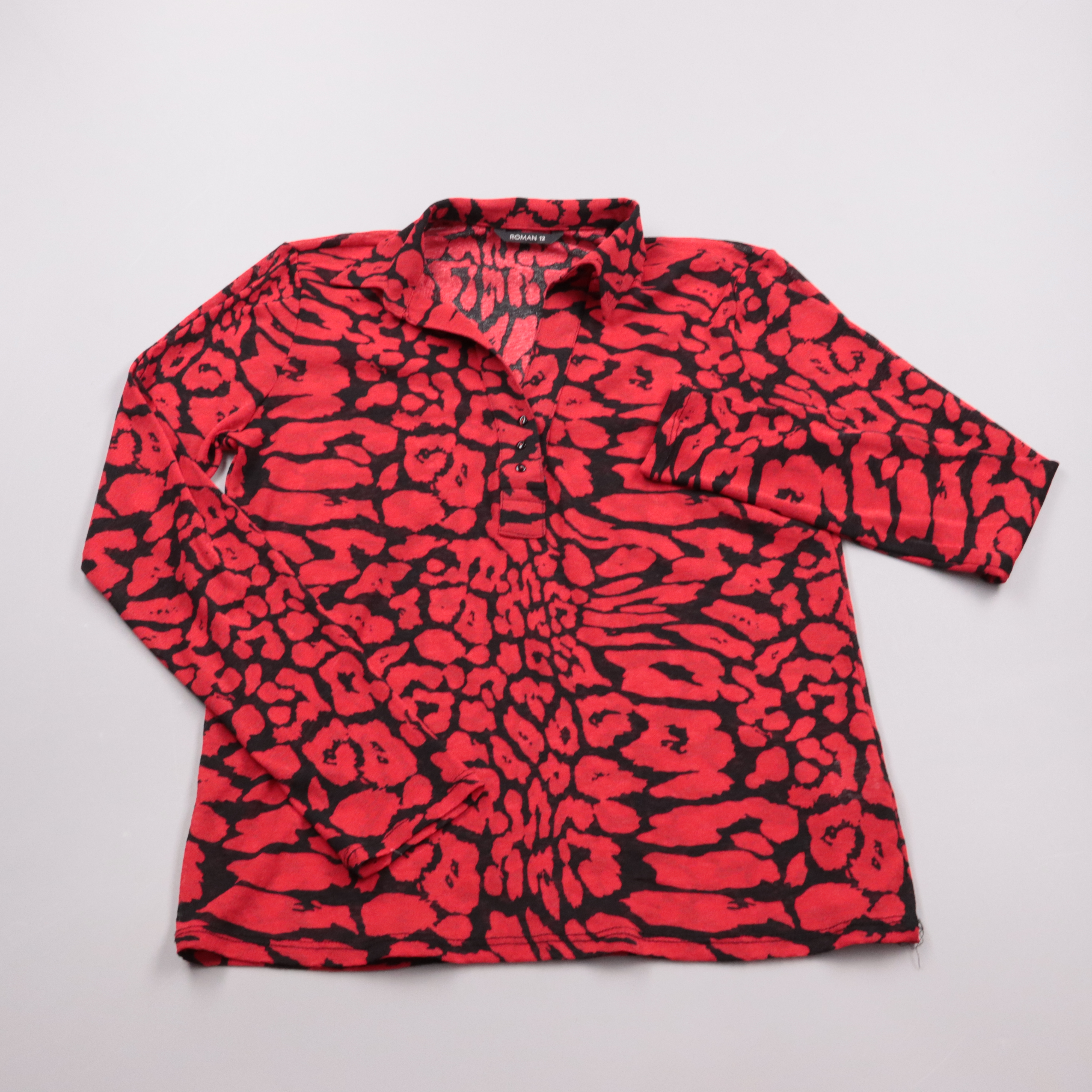 Блузка Roman с длинным рукавом и воротником-поло, выполнена из лёгкого полиэстера с ярким красно‑чёрным принтом. Подойдёт для повседневных образов и офиса с однотонным низом, хорошо смотрится как самостоятельный акцент. Материал почти не мнётся и быстр...