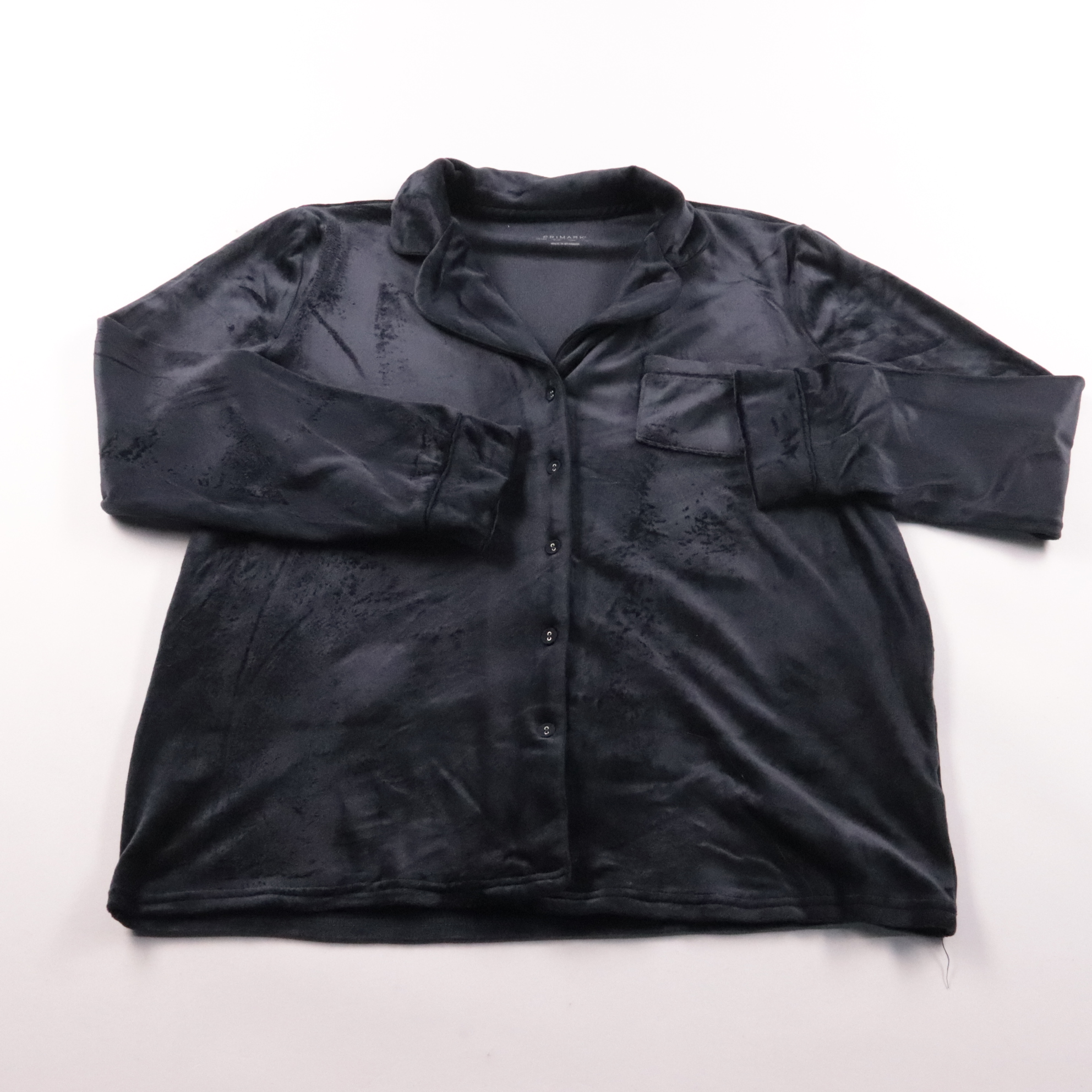 Блузка Primark из мягкого велюра/плюша на пуговицах, чёрного цвета, с нагрудным карманом и длинным рукавом. Подойдёт для дома и отдыха или как уютный casual-верх в прохладную погоду. Ткань тёплая и приятная к телу, практически не мнётся.