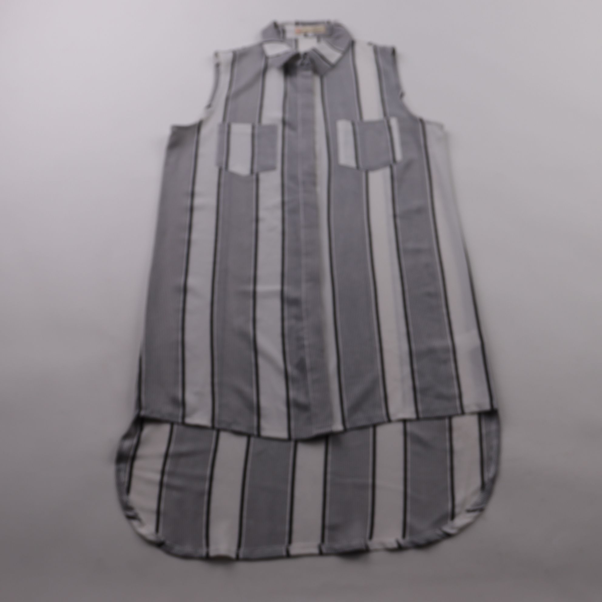 Блузка Cameo Rose без рукавов в вертикальную полоску, с воротником-стойкой и застёжкой на пуговицы. Подойдёт для офиса и повседневных образов с брюками или юбкой. Полиэстер почти не мнётся и быстро сохнет.