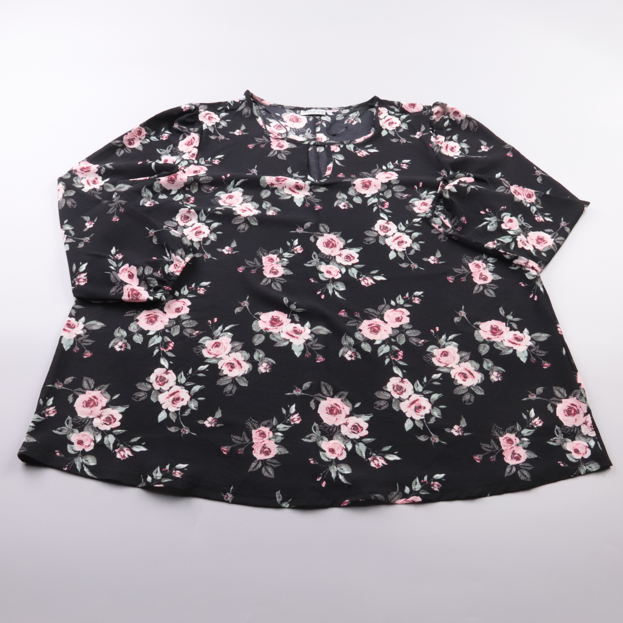 Блузка Janina с цветочным принтом на чёрном фоне и небольшим разрезом у горловины. Подойдёт для офиса и на каждый день, хорошо сочетается с однотонными брюками или юбкой. Лёгкая ткань комфортна в носке и не сковывает движения.