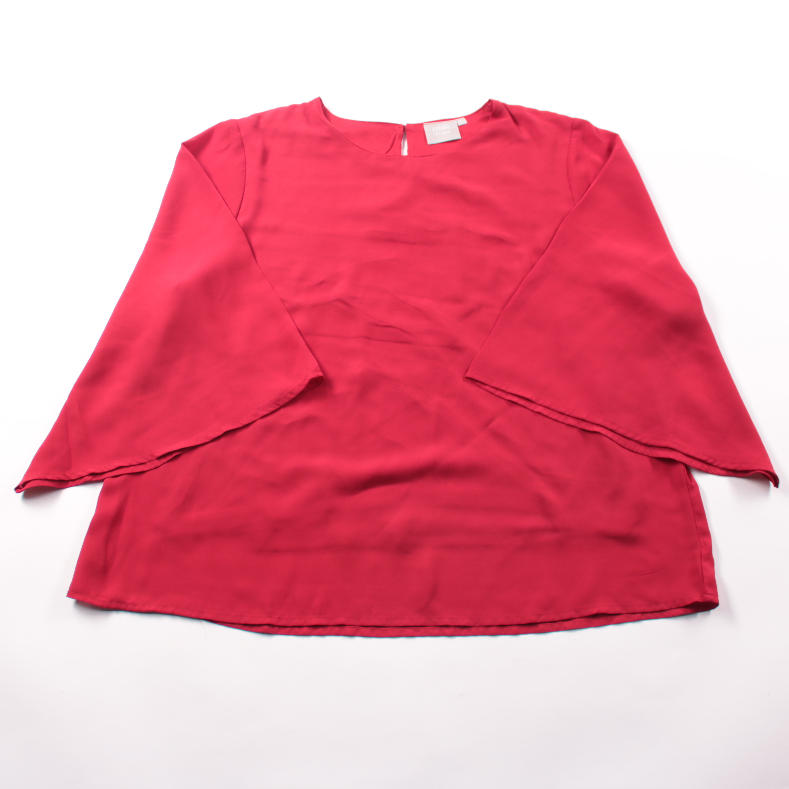 Блузка Create насыщенного красного цвета с лаконичным круглым вырезом и широкими рукавами. Подойдёт для офиса и вечерних выходов, легко сочетается с брюками и юбками. Материал почти не мнётся и быстро сохнет, поэтому удобна в уходе.