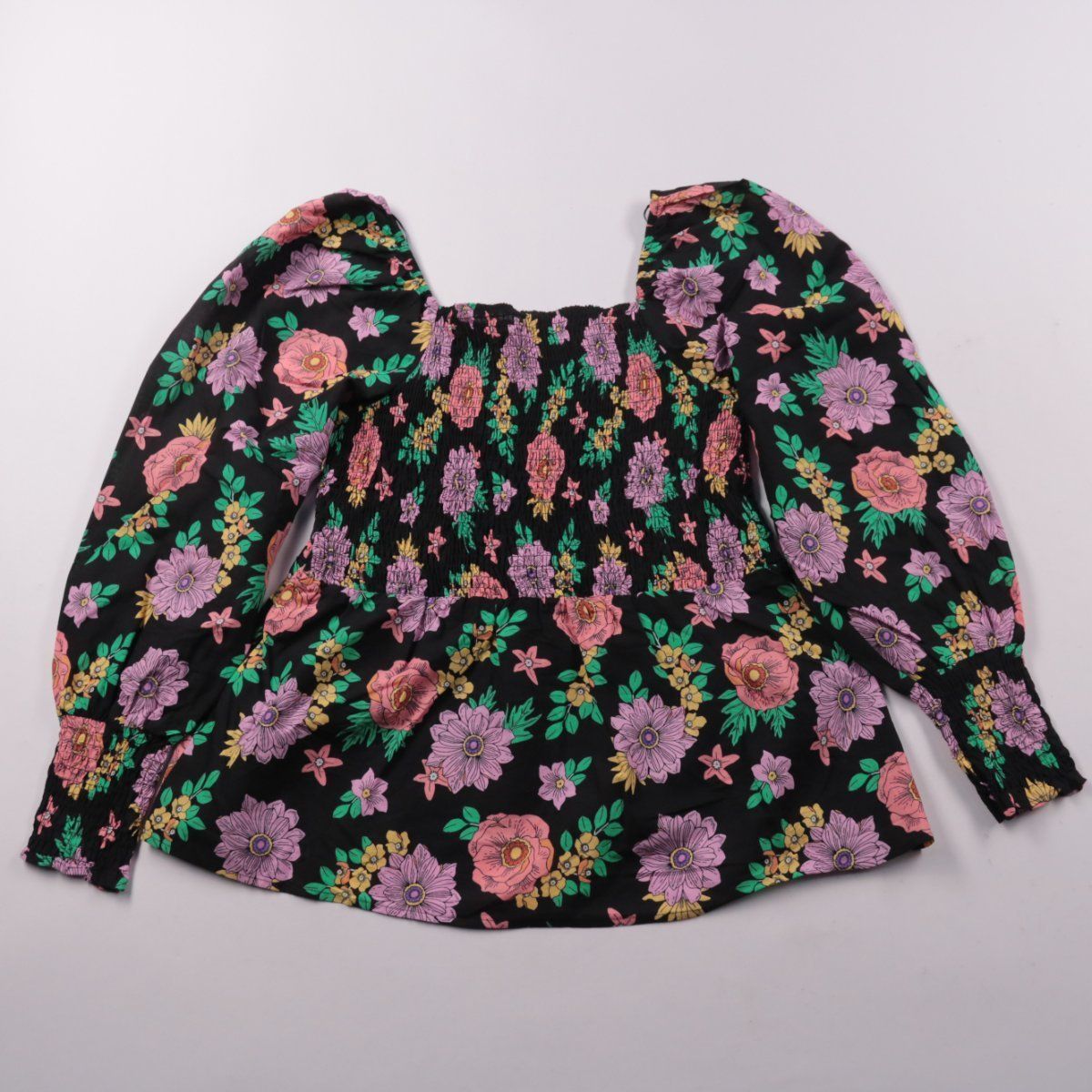 Женская блузка M&S из хлопка с цветочным принтом и квадратным вырезом. За счёт эластичной сборки по груди и пышных рукавов хорошо садится и подойдёт для повседневных и более нарядных образов. Практичный плюс — дышащий материал и комфортная посадка без застёжек.