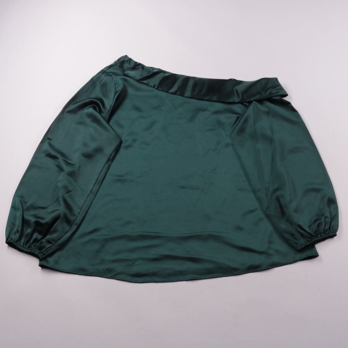 Женская блузка City Chic из гладкой ткани с лёгким блеском, цвет тёмно-зелёный. Подойдёт для офиса и выходов, хорошо сочетается с брюками и юбками. Практичный плюс — материал почти не мнётся и быстро сохнет после стирки.