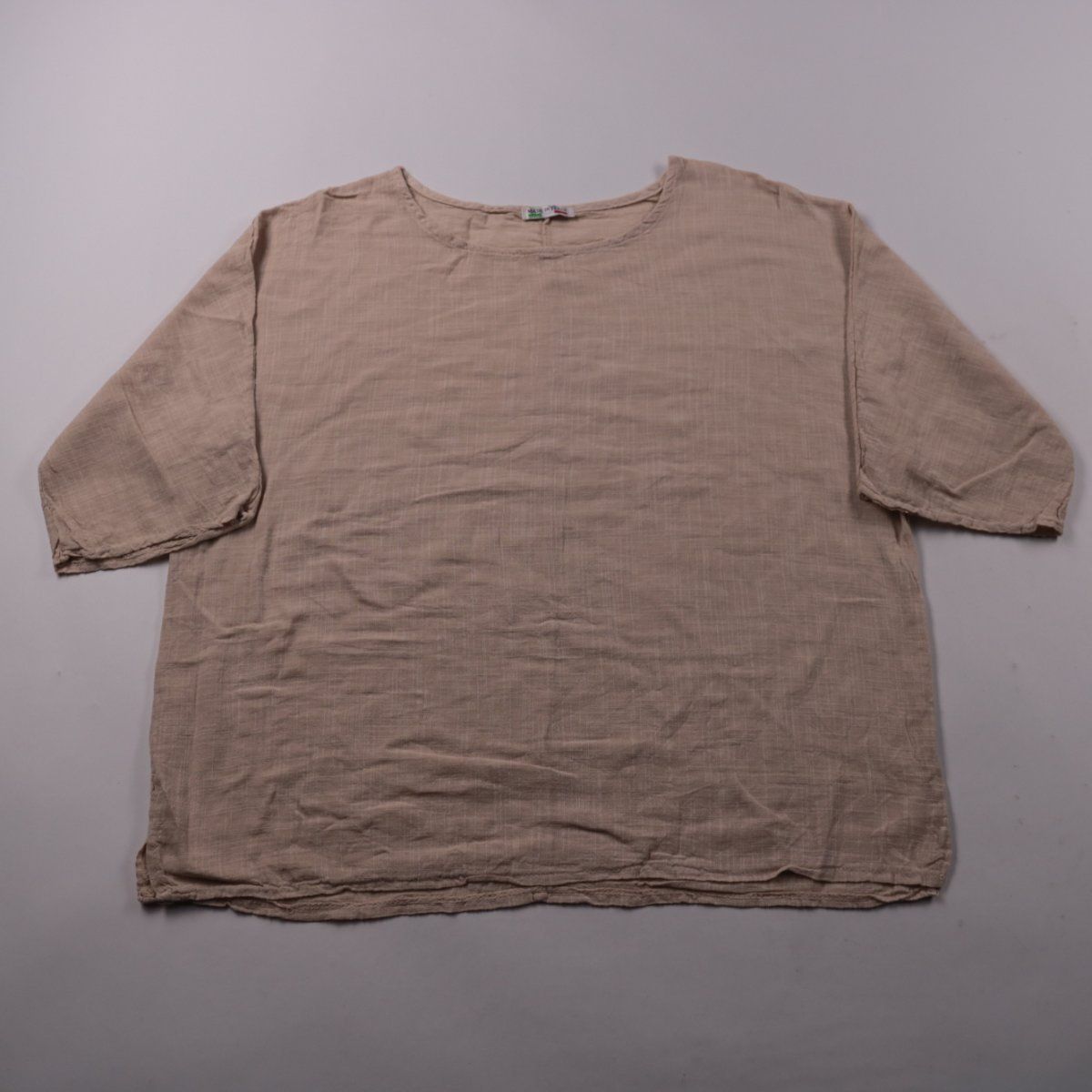 Лёгкая женская блузка свободного кроя из 100% хлопка, Made in Italy, в бежевом оттенке corda. Подойдёт для лета и тёплой весны, хорошо смотрится с джинсами и льняными брюками. Практична в уходе и комфортна в жару за счёт дышащей ткани.