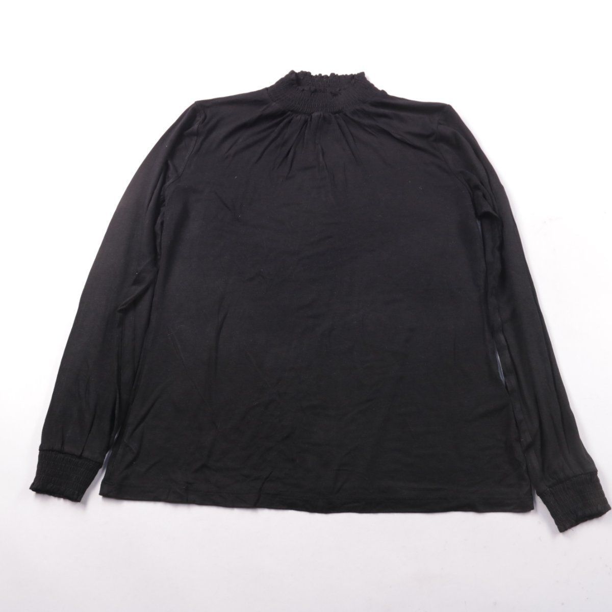 Женская чёрная блузка Peacocks с длинным рукавом и высоким присборенным воротником. Подойдёт для офиса и повседневных образов в прохладную погоду, хорошо сочетается с брюками и юбками. Ткань из вискозы с эластаном приятная к телу и немного тянется.