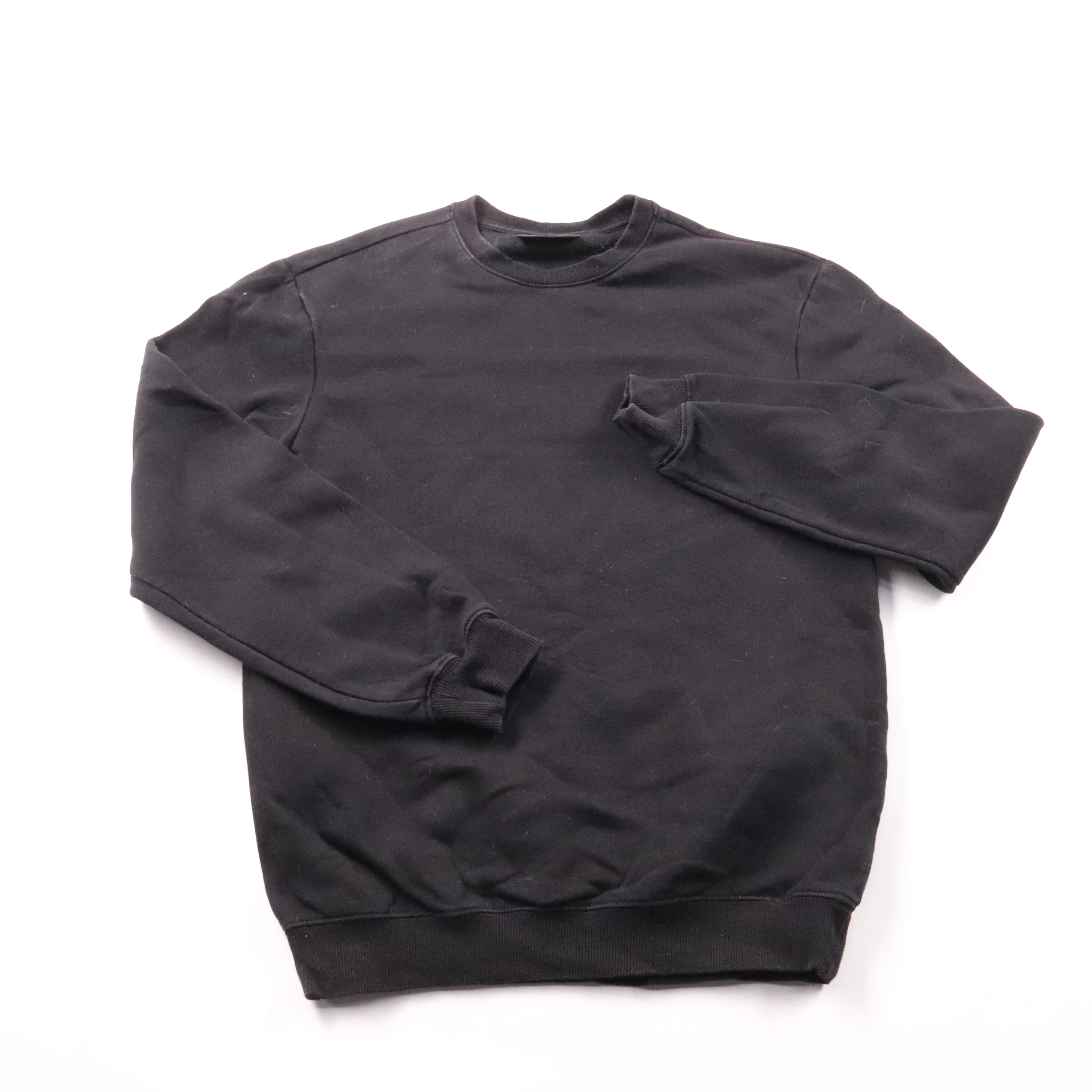 Чёрный свитшот H&M Crew Neck Sweatshirt в свободной посадке relaxed fit. Подойдёт для повседневных образов, прогулок и учёбы, хорошо сочетается с джинсами и спортивными брюками. Плотный трикотаж с мягкой изнанкой делает его тёплым и комфортным в носке.