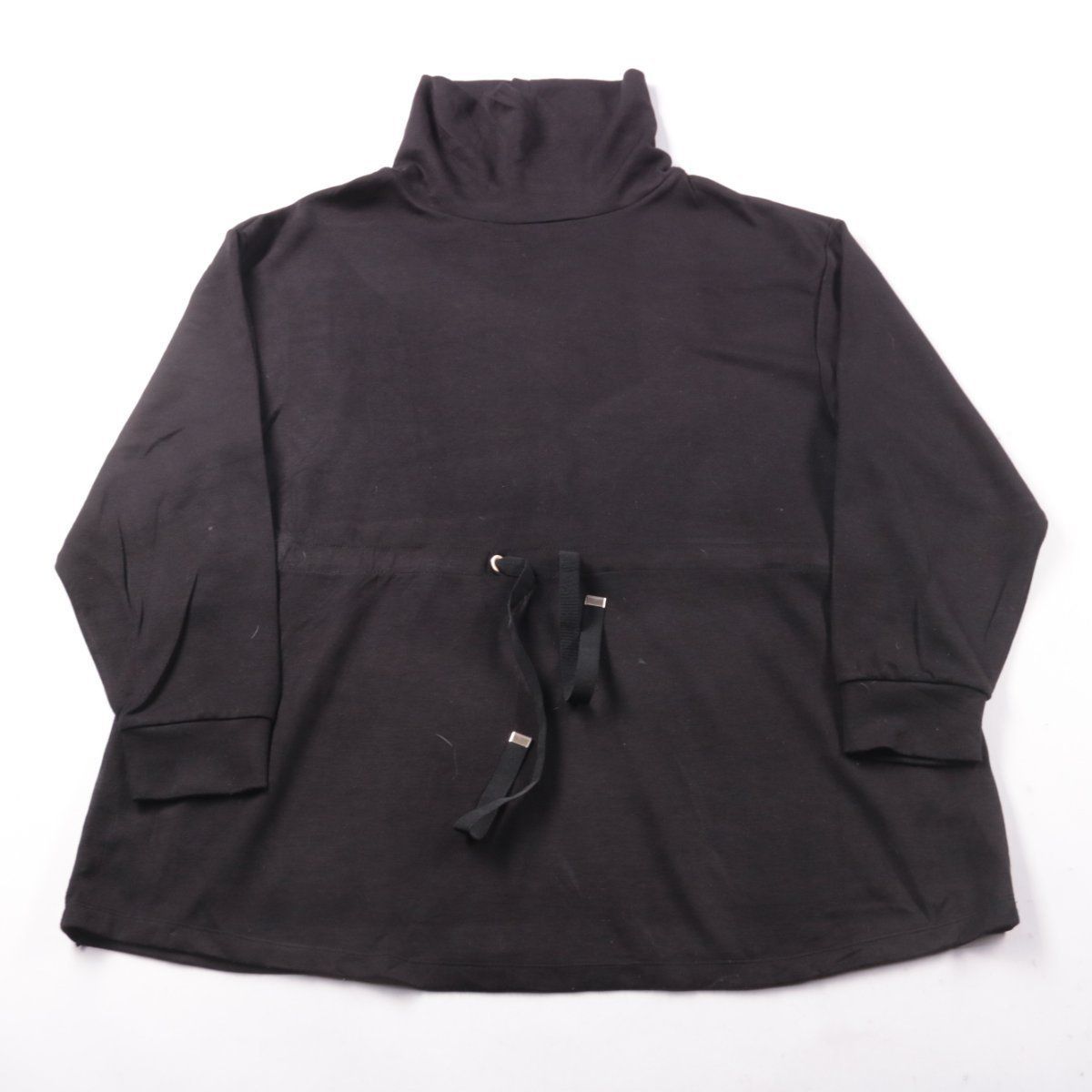 Чёрный свитшот F&F с высоким воротником и кулиской на талии. Подойдёт для повседневных образов и прохладной погоды в межсезонье. Удобно регулировать посадку по талии благодаря завязкам.