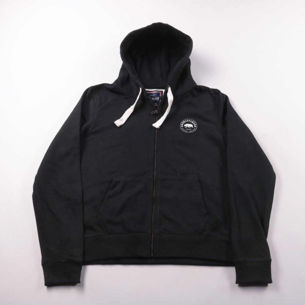 Женская толстовка Soulcal&Co на молнии с капюшоном и шнурками, выполнена в чёрном цвете. Подойдёт для повседневной носки и прогулок в прохладную погоду. Практичный плюс — удобная застёжка-молния, можно быстро регулировать тепло.