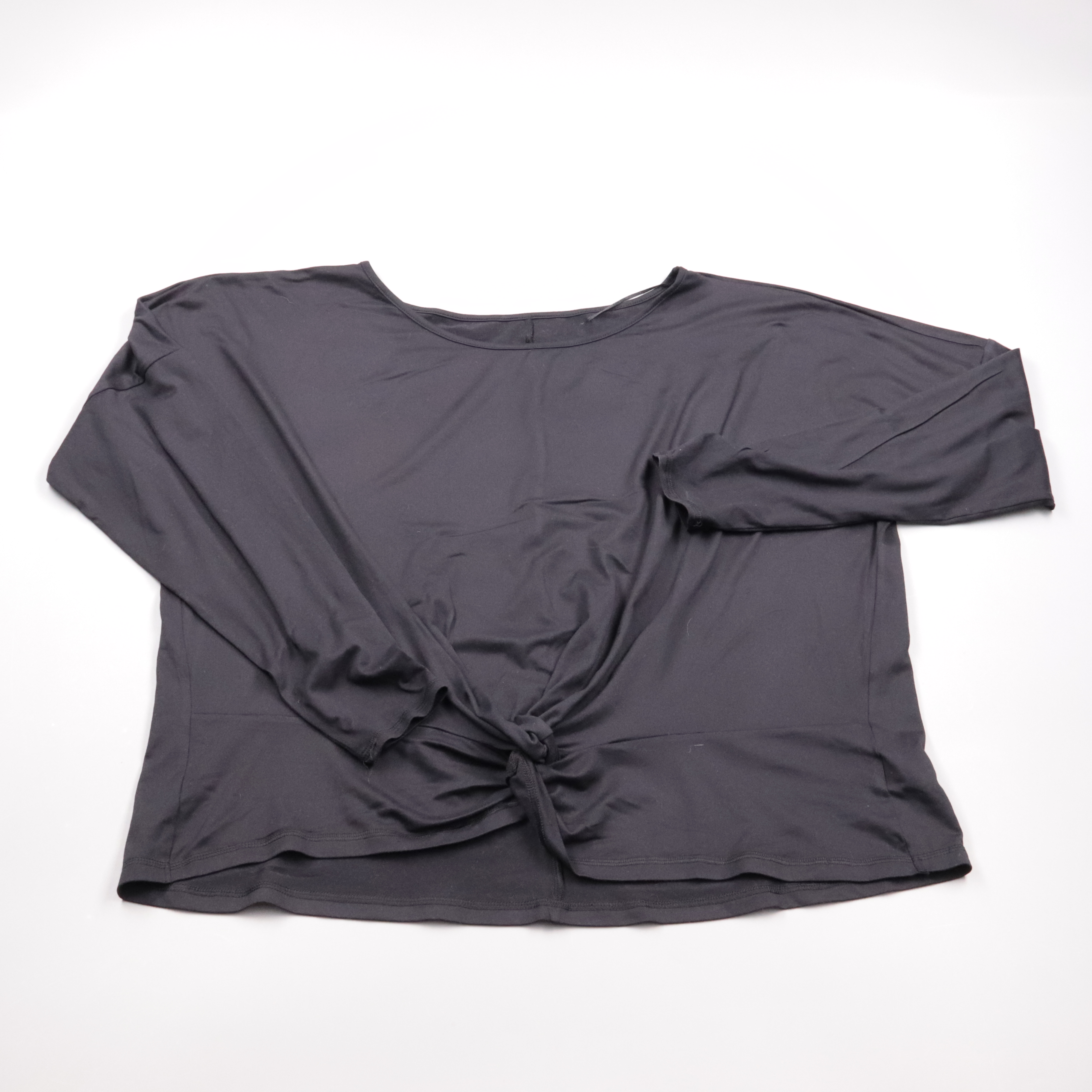 Женский лонгслив F&F чёрного цвета из мягкого эластичного трикотажа, спереди узел/драпировка по центру. Подойдёт для повседневных образов и на выход, хорошо смотрится с джинсами и юбками. Материал тянется и комфортно садится по фигуре.