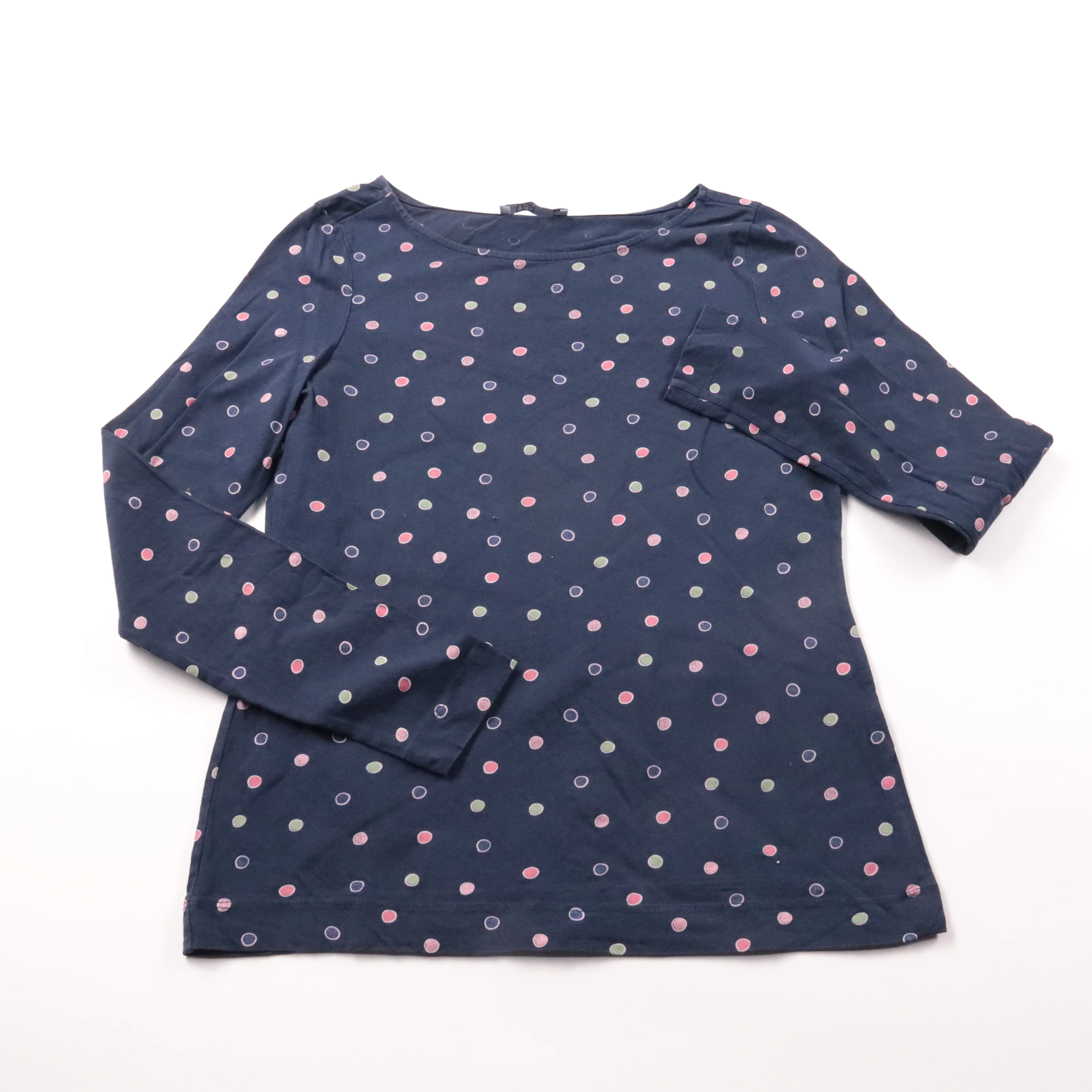 Женский лонгслив edc тёмно-синего цвета с принтом в горошек и небольшим карманом на груди. Подойдёт для повседневных образов и офиса в стиле casual, хорошо сочетается с джинсами и однотонными юбками. Практичный плюс — мягкий трикотаж и длинный рукав, у...