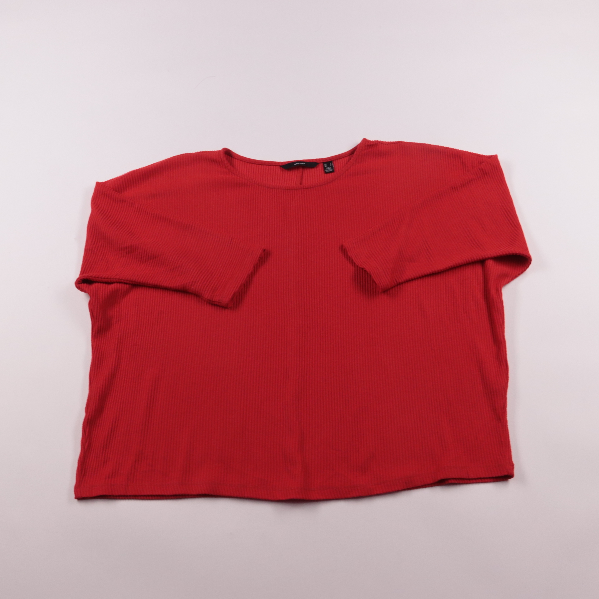 Женская футболка Vero Moda из фактурного трикотажа в рубчик, ярко‑красного цвета. Подойдёт для повседневных образов и как базовый слой в прохладную погоду. Материал тянется и комфортно садится по фигуре.