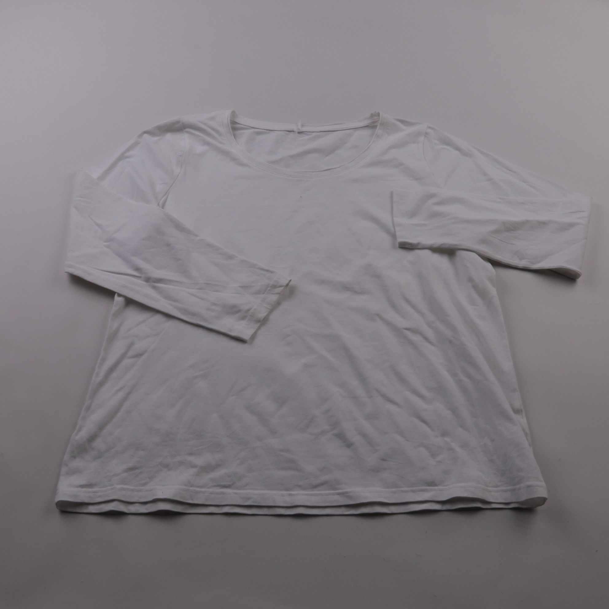 Белый женский лонгслив без видимого бренда, с округлым вырезом и базовым прямым силуэтом. Подойдёт для повседневных образов, как самостоятельный верх или как нижний слой под жакет/кардиган. Практичное преимущество — нейтральный цвет легко сочетается с ...
