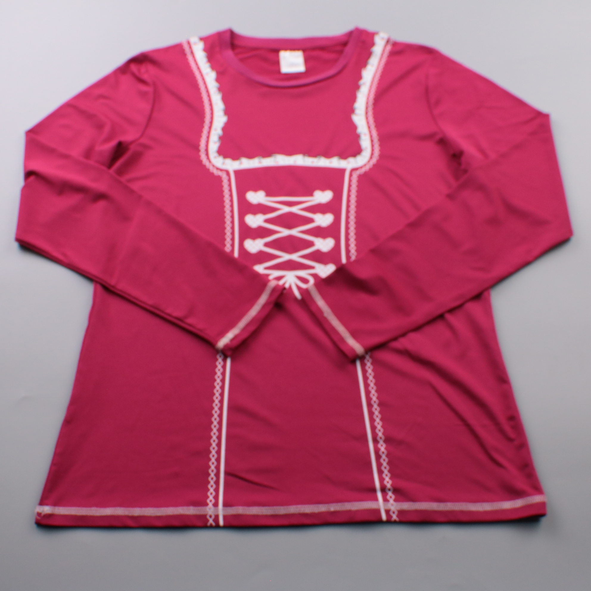 Женский лонгслив J-Line цвета бордо с декоративным принтом и отделкой под корсет на груди. Подойдёт для повседневных образов и тематических мероприятий, хорошо сочетается с джинсами и юбками. Эластичный материал тянется и комфортно садится по фигуре.