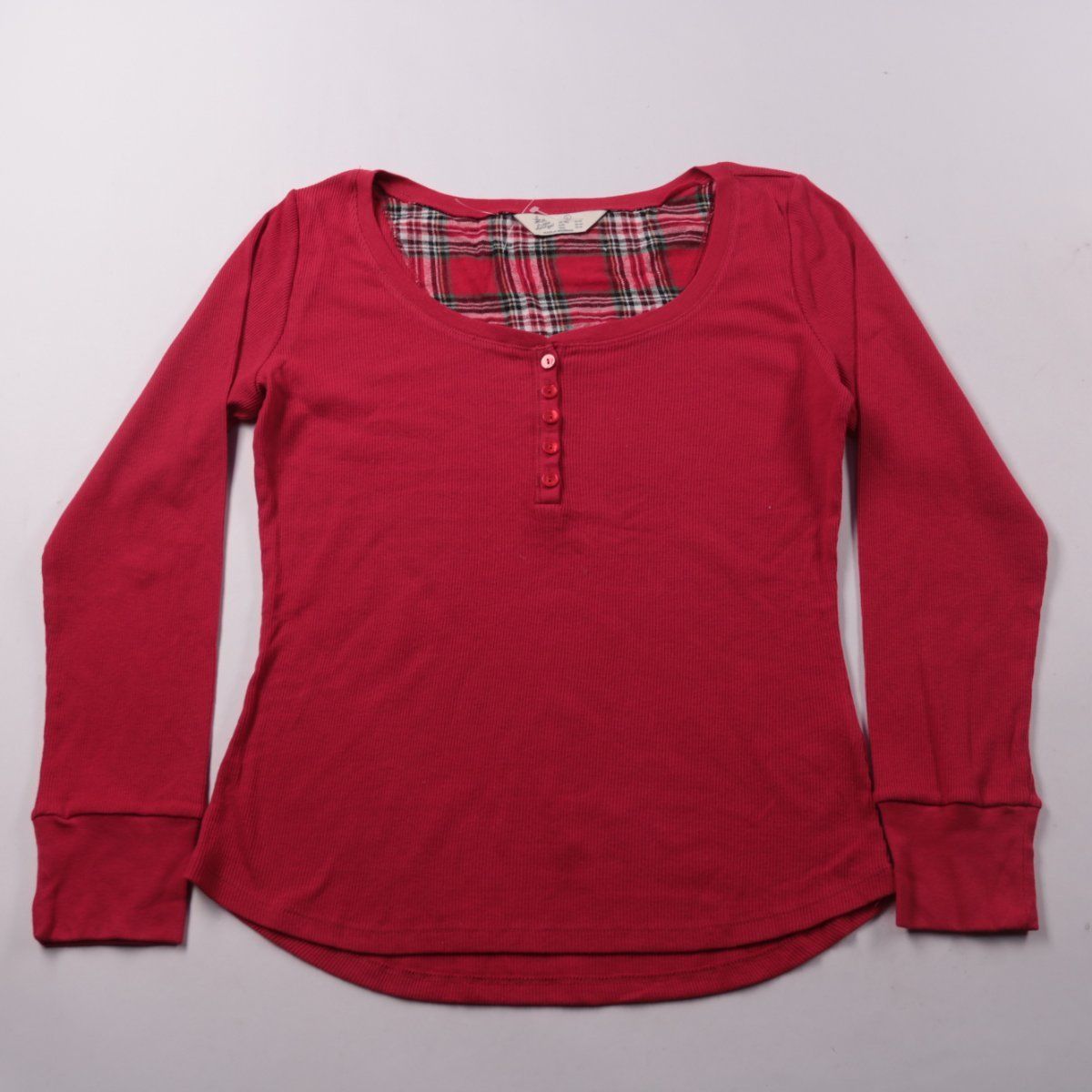 Женский лонгслив Love to lounge красного цвета из трикотажа в рубчик, с планкой на пуговицах и клетчатой отделкой внутри горловины. Подойдёт для повседневной носки в прохладную погоду и как базовый слой. Практичный плюс — мягкая хлопковая смесь, которая хорошо дышит и проста в уходе.