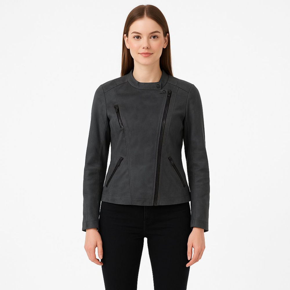 Женская куртка Only из эко-кожи в сером цвете, с асимметричной молнией и карманами на молнии. Подойдёт для повседневных образов в демисезон — с джинсами, брюками или платьями. Практична в носке: материал легко протирается и не требует сложного ухода.