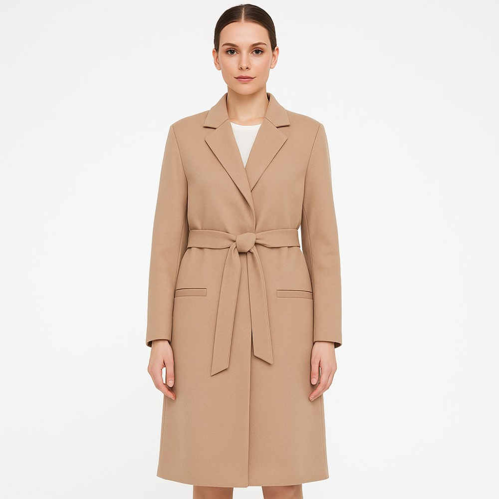 Женское пальто Alba Moda бежевого оттенка с классическими лацканами и поясом на талии. Подойдёт для офиса и повседневных выходов в прохладную погоду, легко сочетается с платьями и брюками. Практичная деталь — пояс регулирует посадку и позволяет носить ...