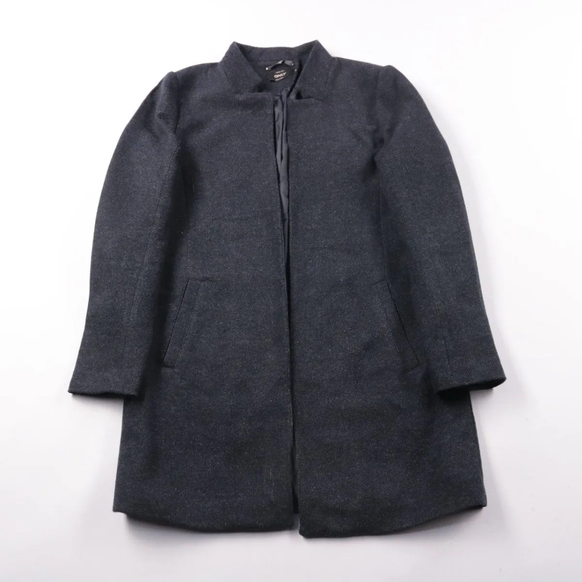 Женское пальто Only тёмно-серого цвета прямого кроя с лаконичным воротником и боковыми карманами. Подойдёт для повседневных образов в городе в межсезонье и для офиса. Плотная ткань и подкладка помогают держать форму и комфортно носить поверх свитера.