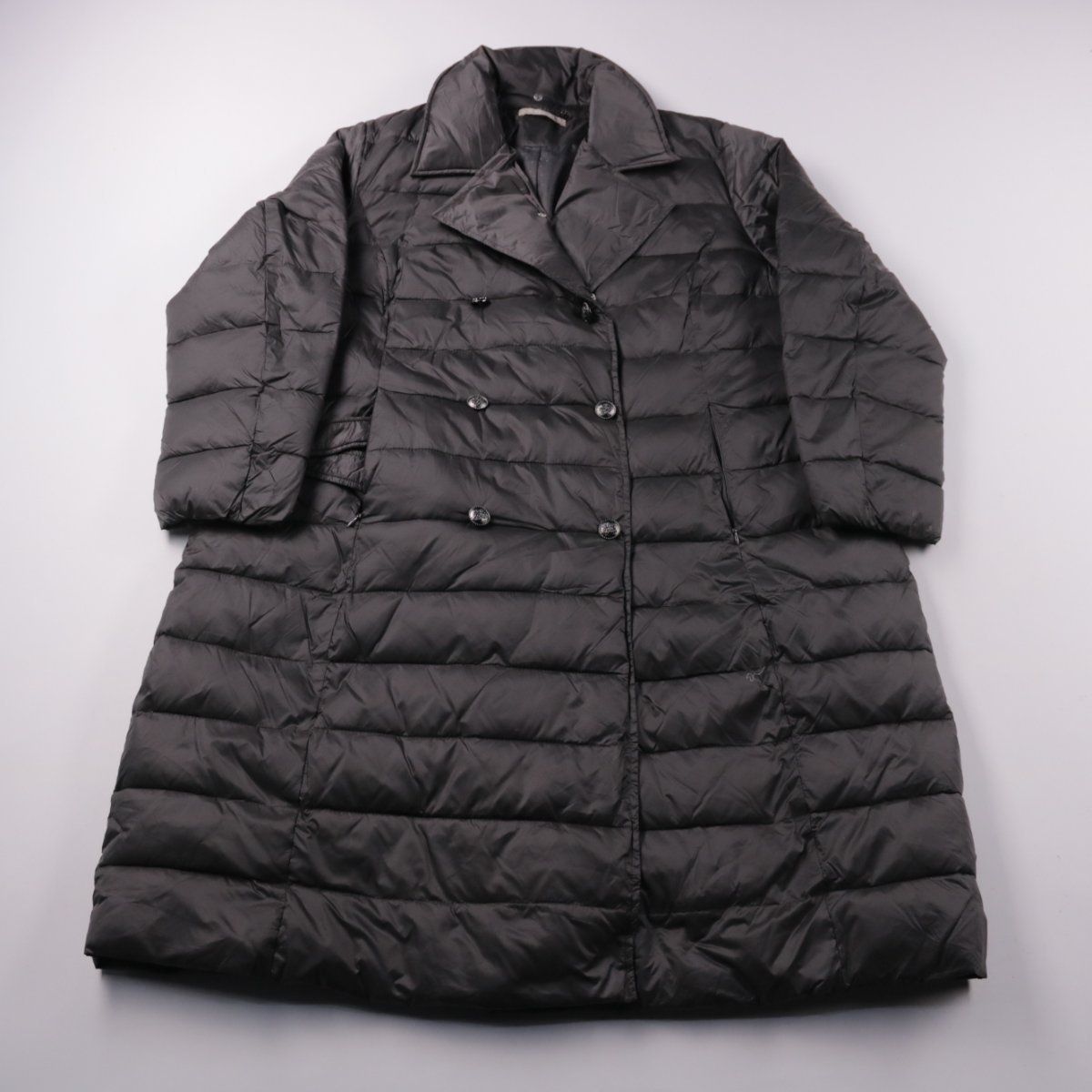 Женский стёганый пуховик Thom в чёрном цвете с двубортной застёжкой и отложным воротником. Подойдёт для зимних прогулок и повседневной носки, хорошо сочетается с брюками и платьями. Практичный плюс — лёгкий синтетический наполнитель и непродуваемая верхняя ткань.