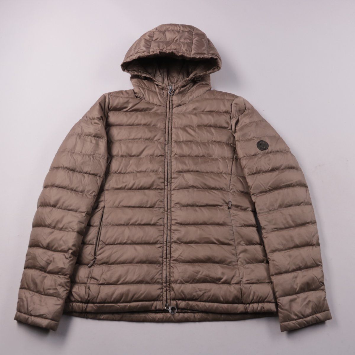 Пуховик CLOSED в коричневом (тауп) оттенке, стёганый, с капюшоном и застёжкой на молнию. Подойдёт для зимних прогулок и города, комфортно носится с тёплым слоем. Лёгкий и не объёмный, удобно складывается и быстро сохнет.