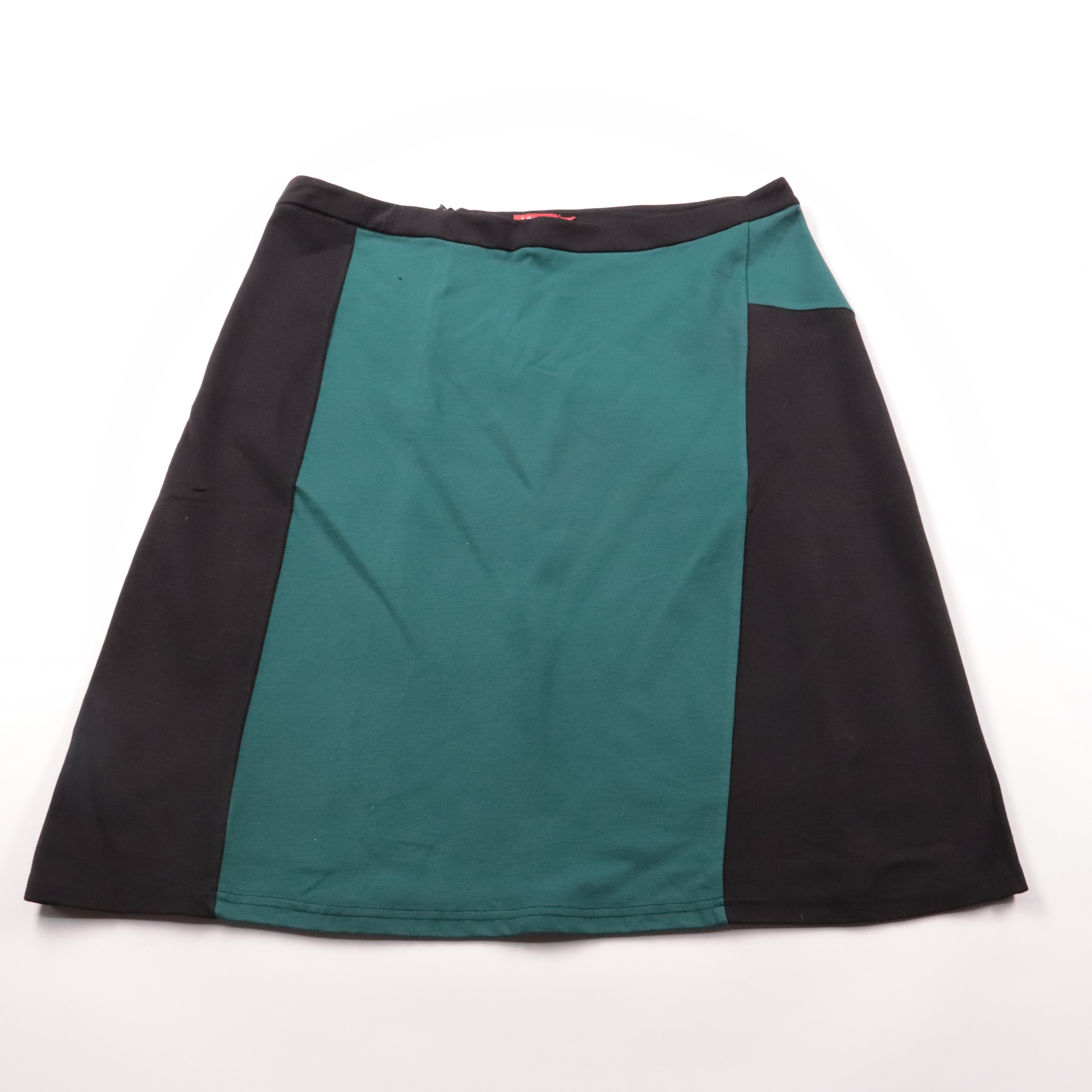 Юбка Libelle с контрастными вставками: центральная часть тёмно-зелёная, боковые панели чёрные. Подойдёт для офиса и повседневных образов, хорошо смотрится с однотонными блузами и водолазками. Плотная ткань держит форму и удобна в носке.