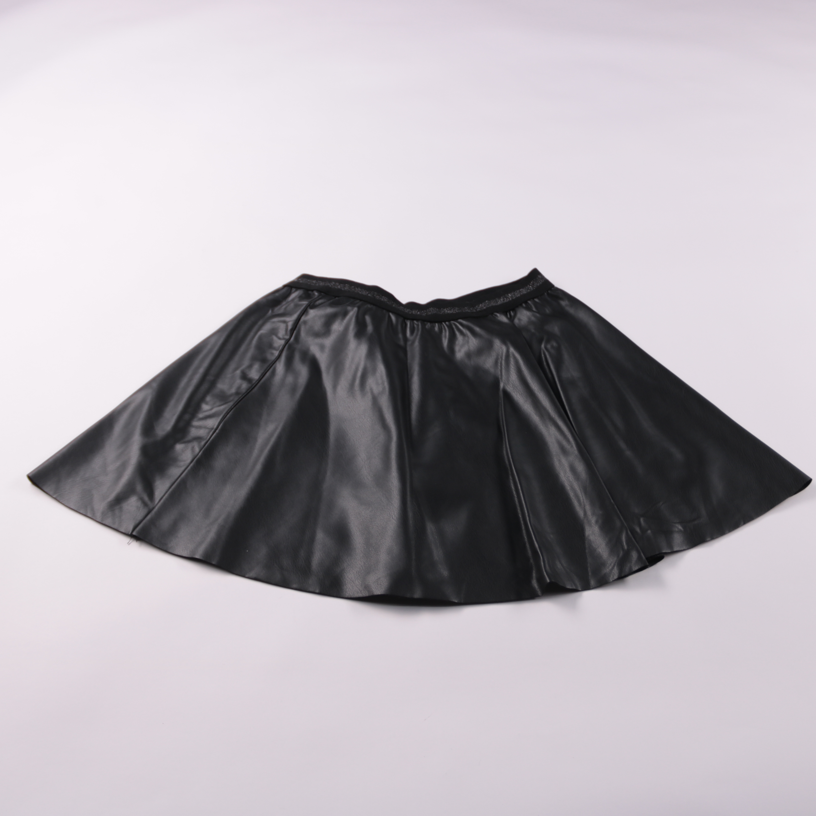 Женская чёрная юбка-солнце из материала под кожу с мягким блеском и эластичным поясом. Подойдёт для повседневных образов и выхода, легко сочетается с топами, рубашками и свитерами. Практичный плюс — ткань не мнётся и проста в уходе.