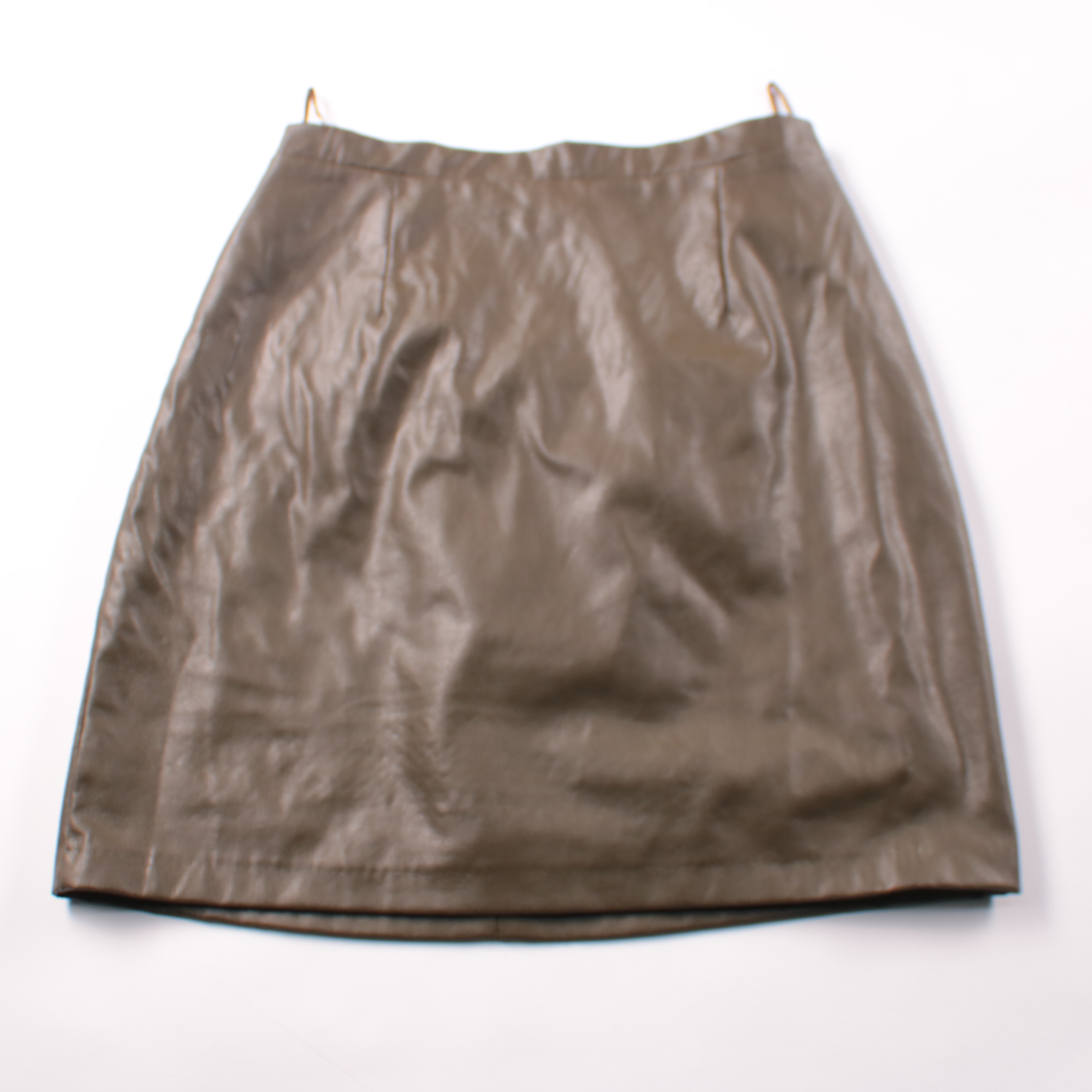 Юбка River Island из экокожи коричневого цвета, прямого силуэта с карманами. Подойдёт для повседневных образов и офиса с плотными колготками и базовыми джемперами. Практичный материал легко протирается и держит форму.